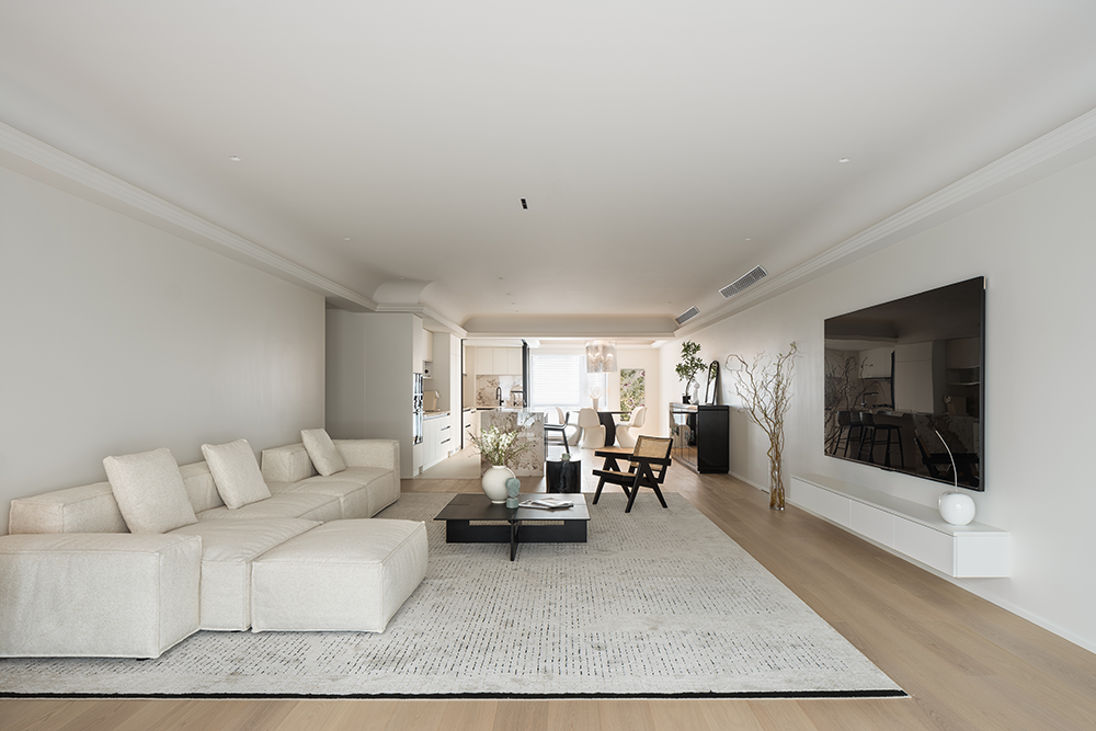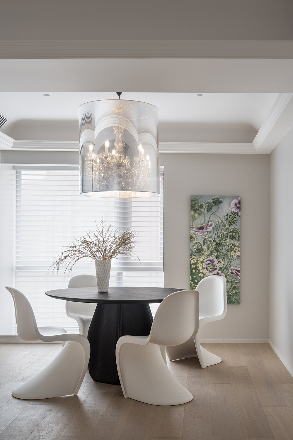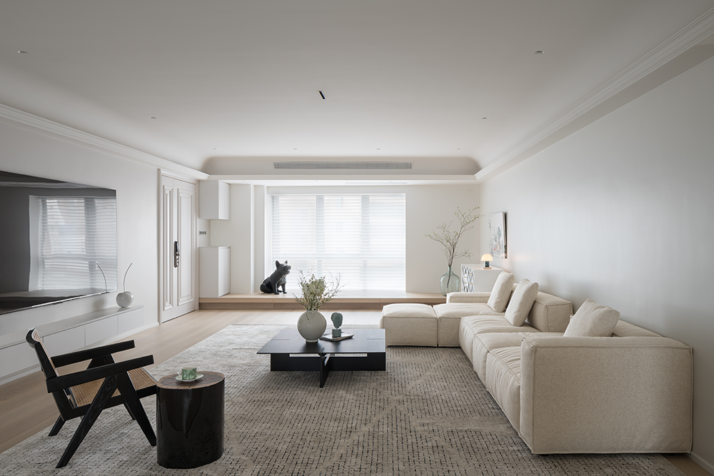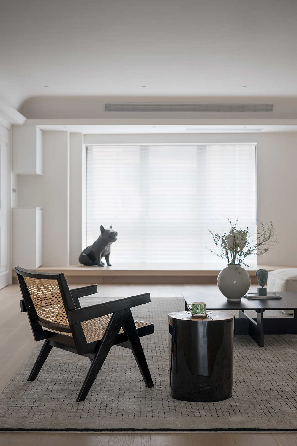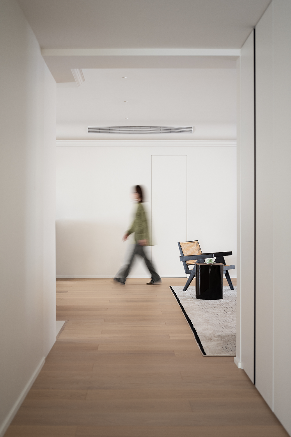 原交付标准过于繁重奢华,屋主喜欢宽敞明亮,干净整洁的空间。设计师基于“满足一家三口”的需求,删繁就简,以“少即是多,大宅至简”的原则进行减法设计。