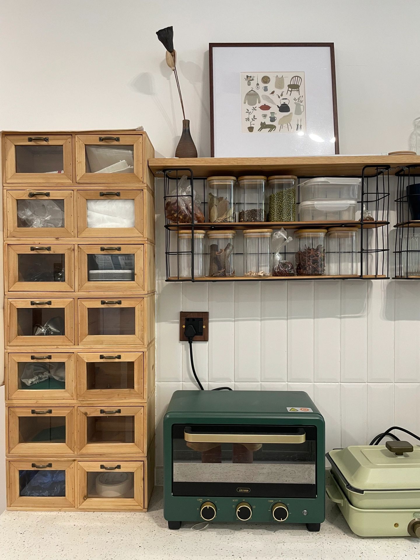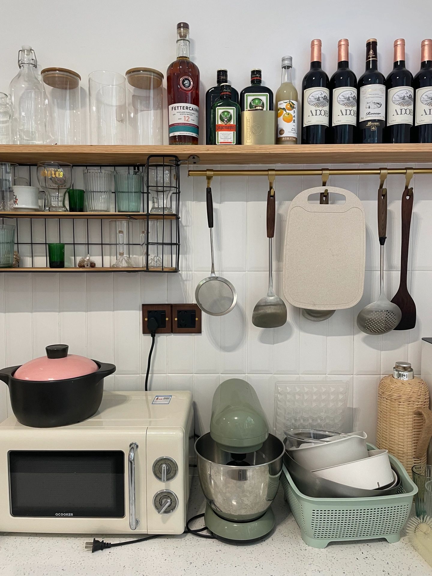 改造后的家,深色与浅色相辅相成,自然感爆棚的藤编元素,精致的玻璃砖,墨绿色的橱柜,还有小花砖,打造出精致而温馨自然的小家,爱了爱了~