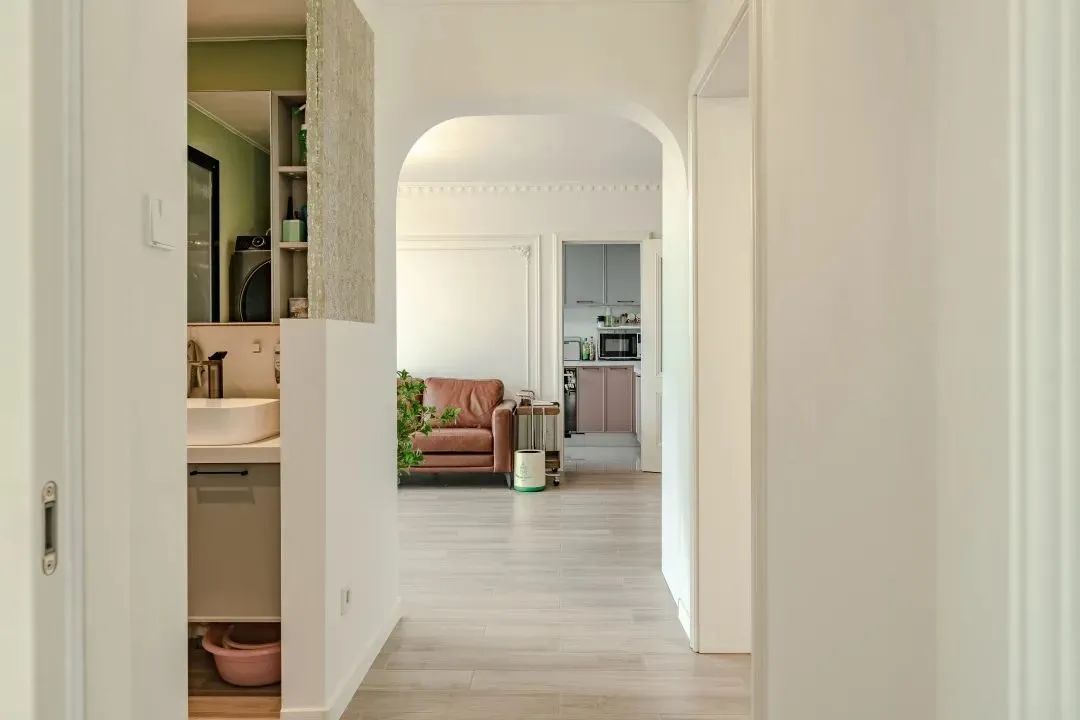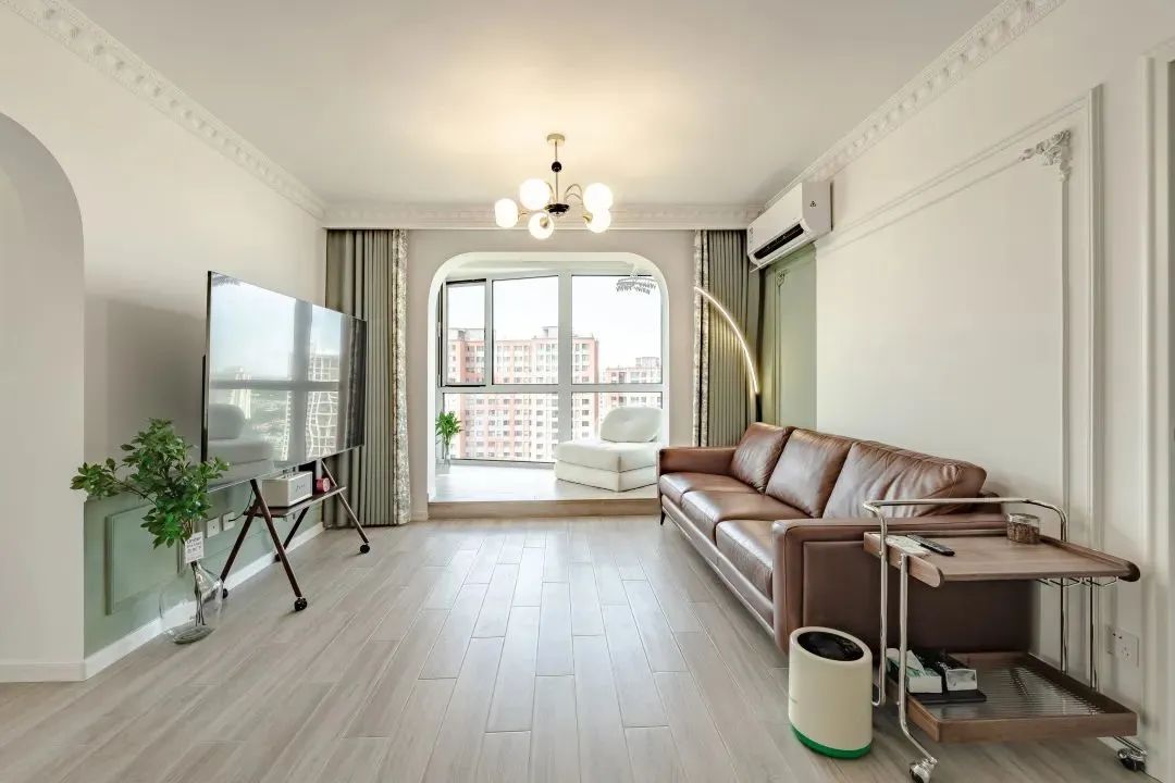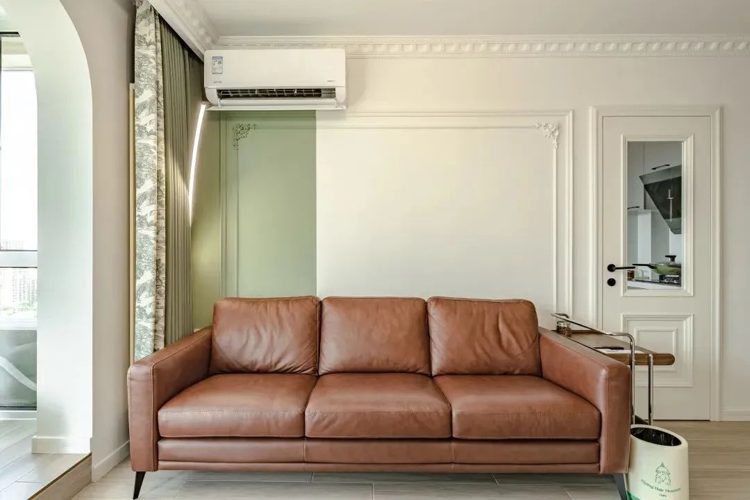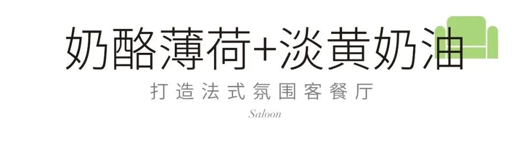 屋主@小郝喜欢大面积浅色的温柔氛围,又想家里不要千篇一律,设计师结合了屋主最喜欢的绿色,做了淡黄奶油+奶酪薄荷的配色,浪漫微甜。