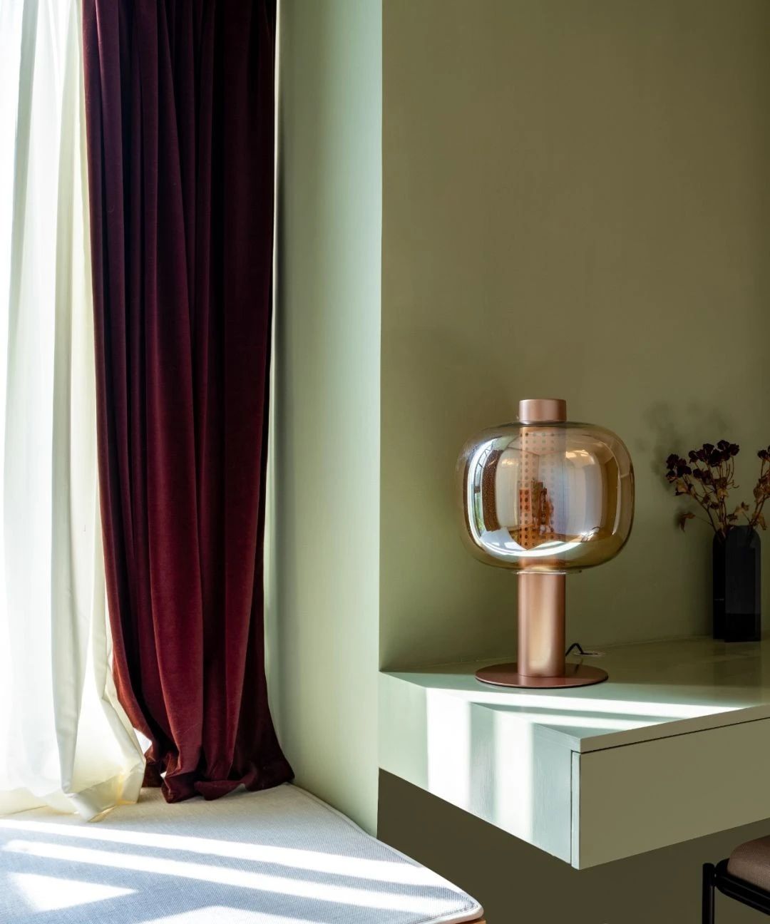 窗帘搭配的是复古的红色,红绿搭配不一定会土,大胆的尝试下肯定会有高级的碰撞。