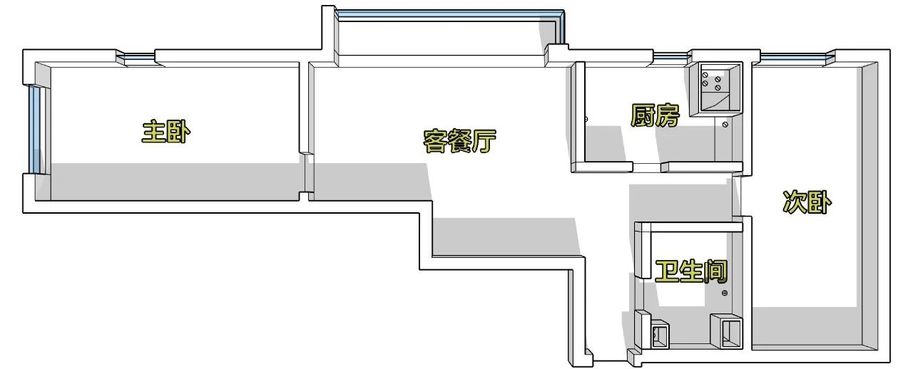 透过洞口,可以看到次卧的陈设。