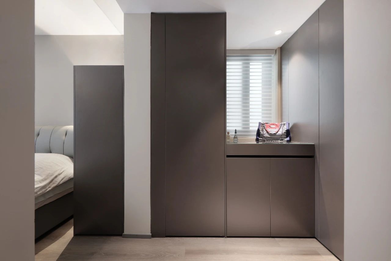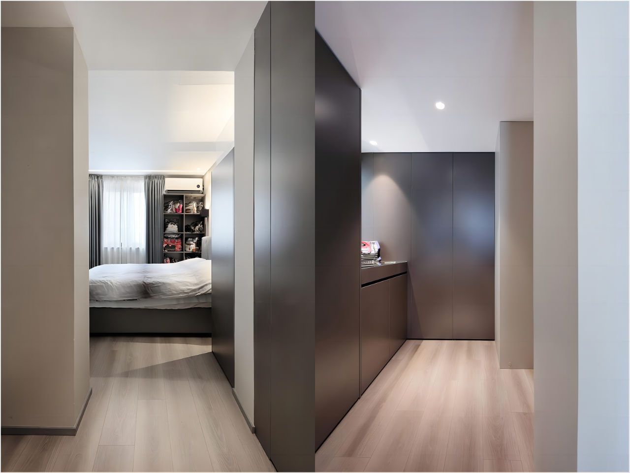 原厨房被改为衣帽间,延续了公共区域的隐形柜设计,让整体有序整洁。