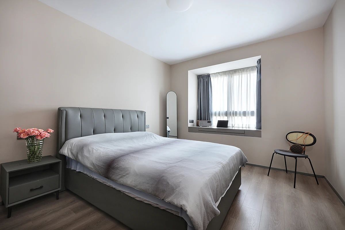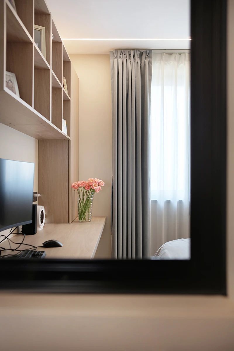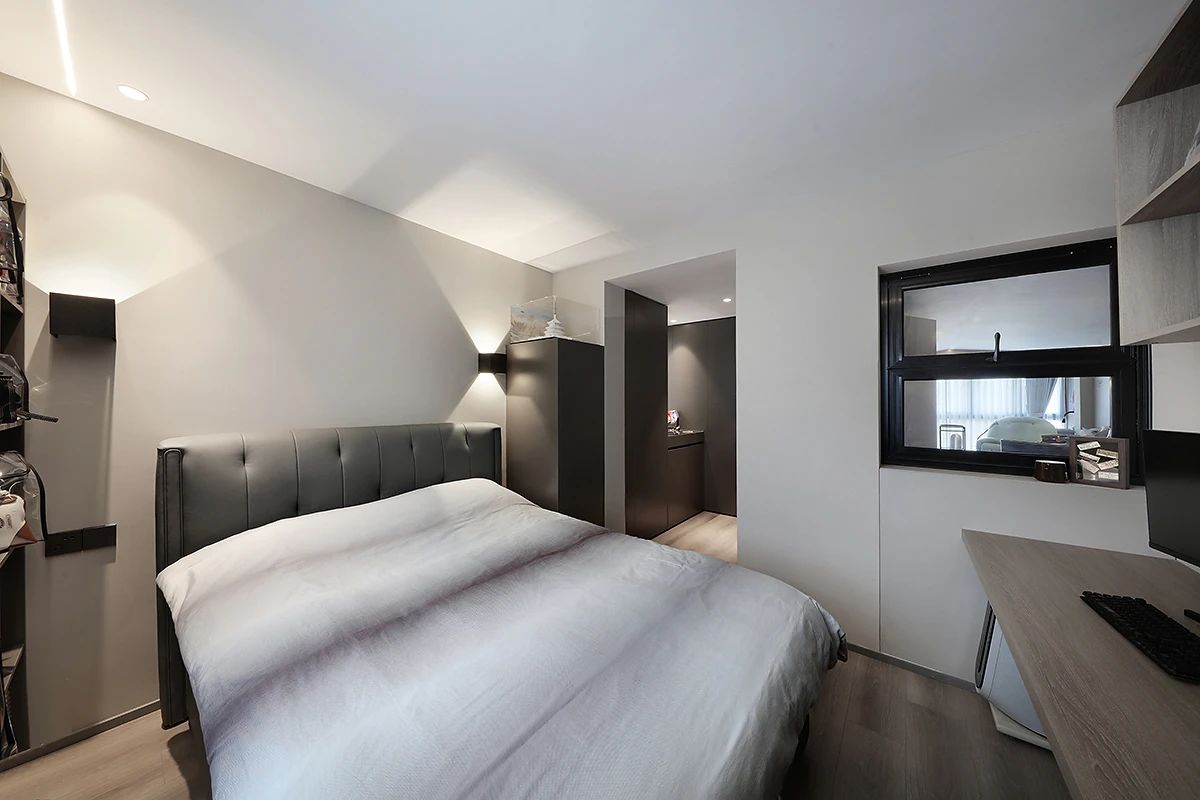 原次卧房门位置被改造成室内窗户,一方面增加采光,另一方面让空间更有趣味。