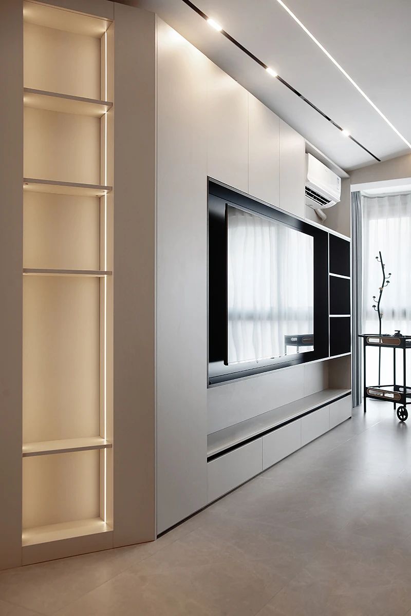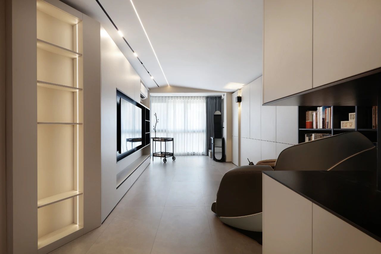 柜体也沿着布局的走势而设计,既扩大视觉感受,又不会模糊区域,将现代风格的整体协调性展现的淋漓尽致。