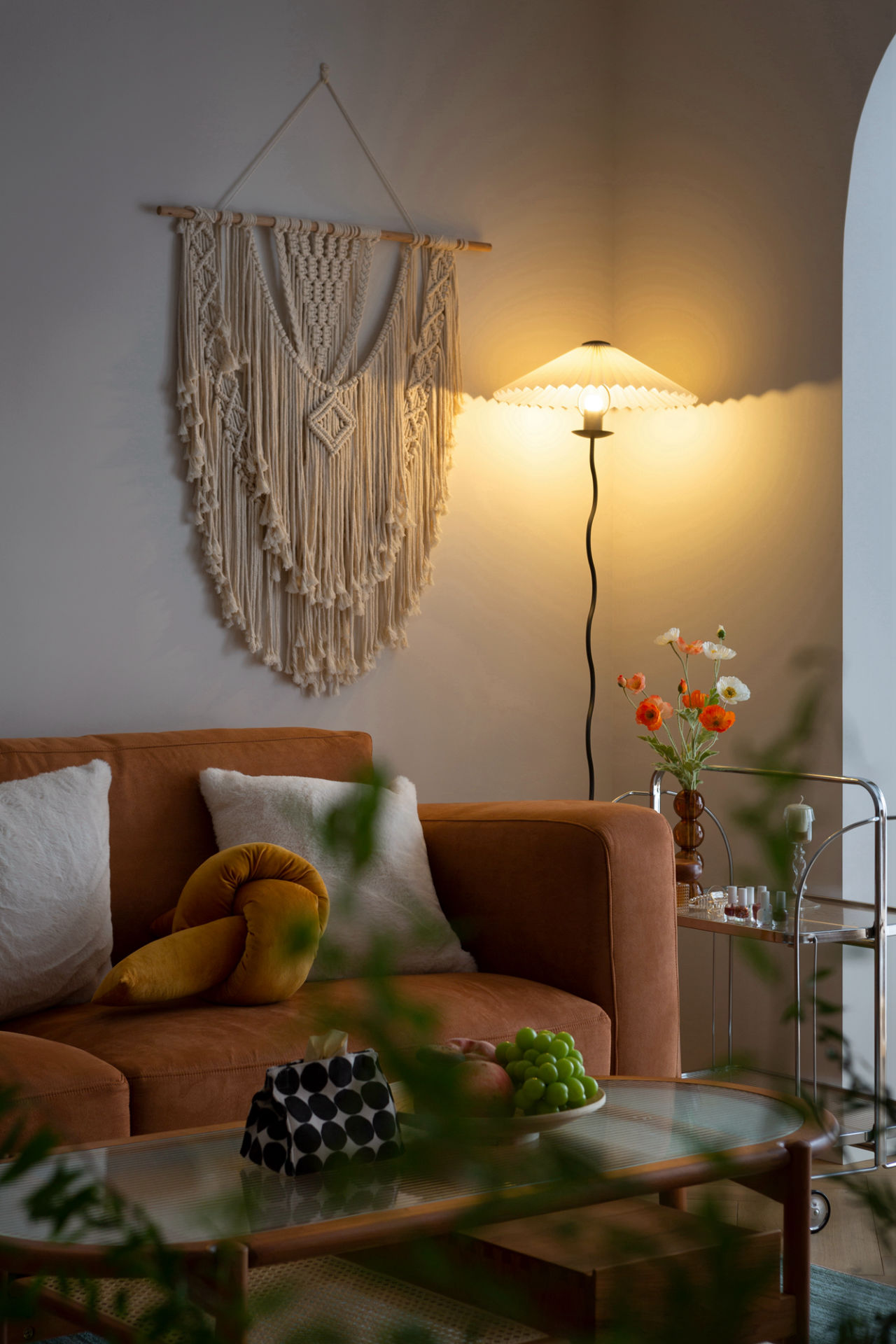 落地灯的温暖光晕,让客厅的一角变得如同杂志封面般美好。