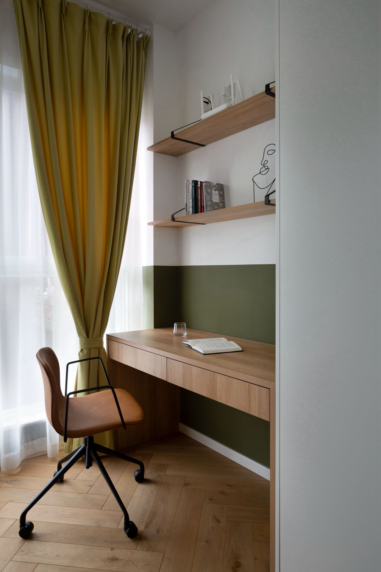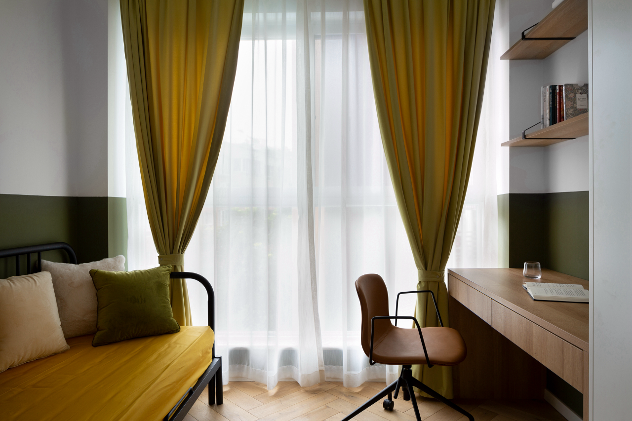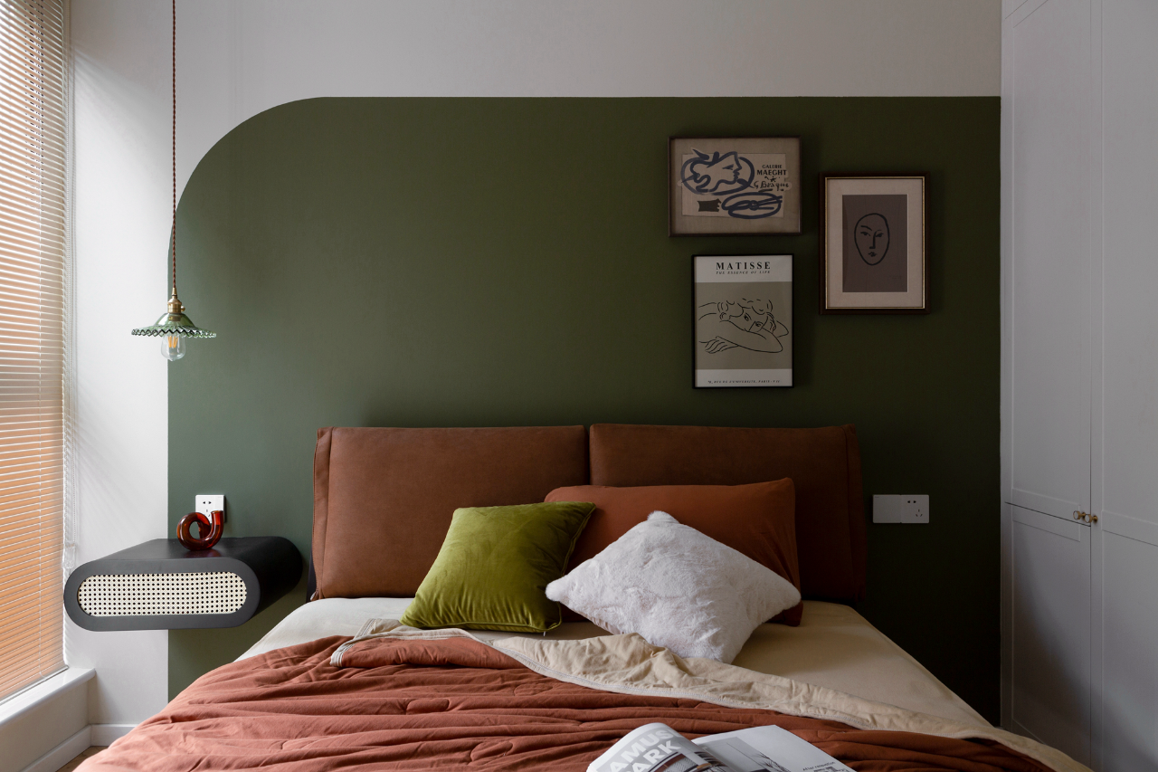 分色墙使用雪松绿,与百叶窗搭配,为客房打造出幽雅的氛围。