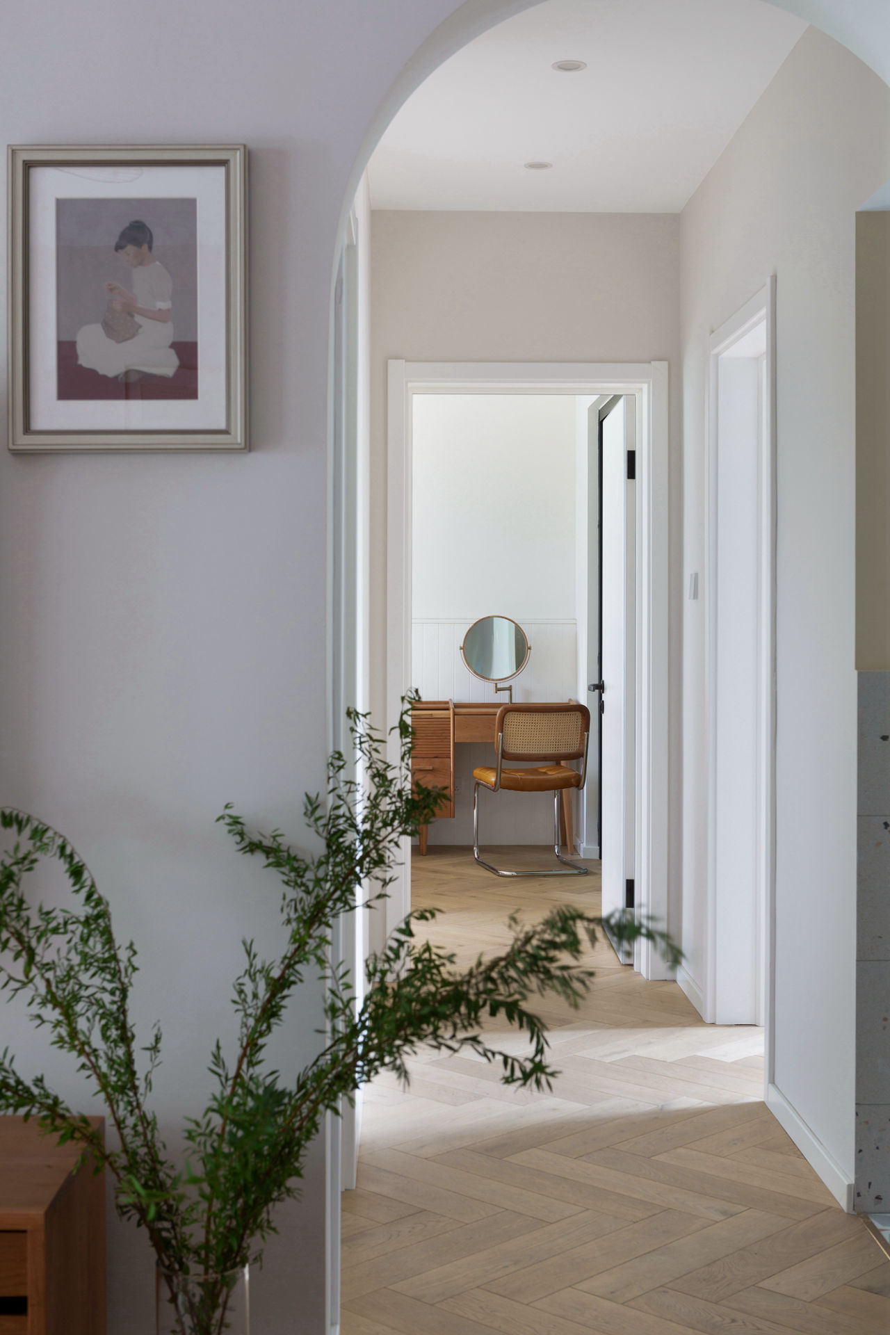 拱门造型在增添空间仪式感的同时,经次卧、多功能房、卫生间引入的自然光线,赋予由外向内的延伸感更有趣的意味。