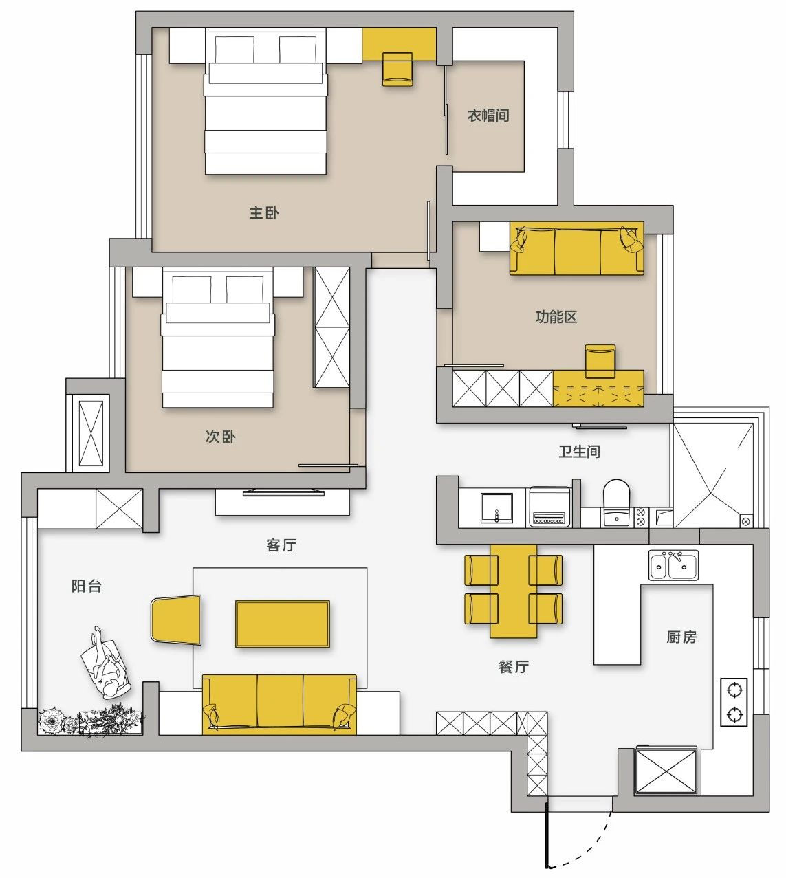 重新整合卫生间与生活阳台之间的关系后,原始的收纳问题及干湿分离都得到解决。