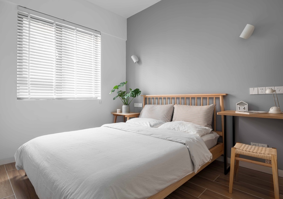 在隔断方面,百叶窗很好的替代了窗帘,灵活调节室内光线。