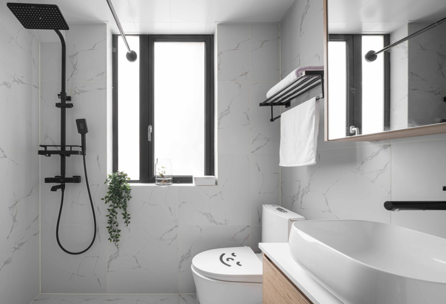 卫生门用的是窄框推拉门+长虹玻璃。置物架用来放衣服毛巾都很方便,好放好拿。