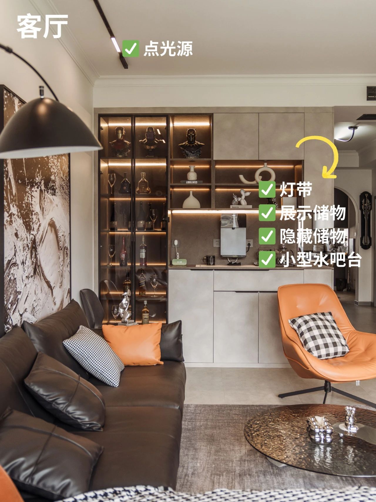 ▫️客厅一面墙的柜子,有藏有露,错落有致