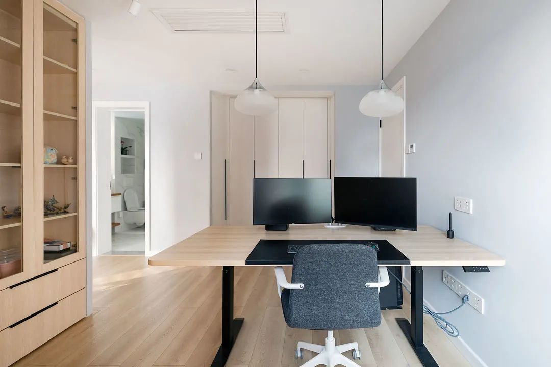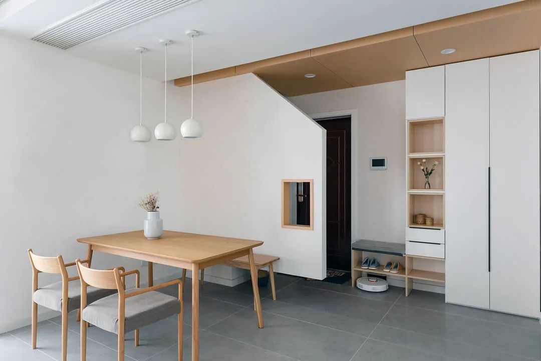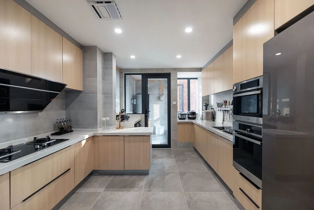 改造后的厨房面积增大更加宽散,原术色双排橱柜设计让整个厨房空间更加高大上,嵌入式蒸烤箱、电冰箱,更加方便使用。原有墙体拆除后设计成收纳柜,可以充当小吧台使用,更加有情调。