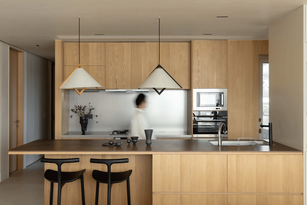 餐厨一体,开放式厨房通透明净,直角卡座延窗户走向设置,同时满足休闲与储物功能。