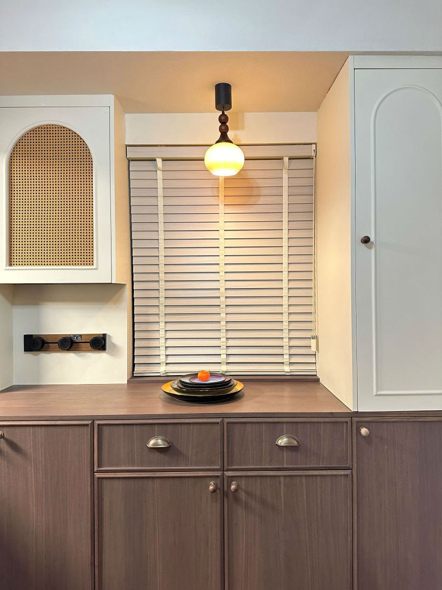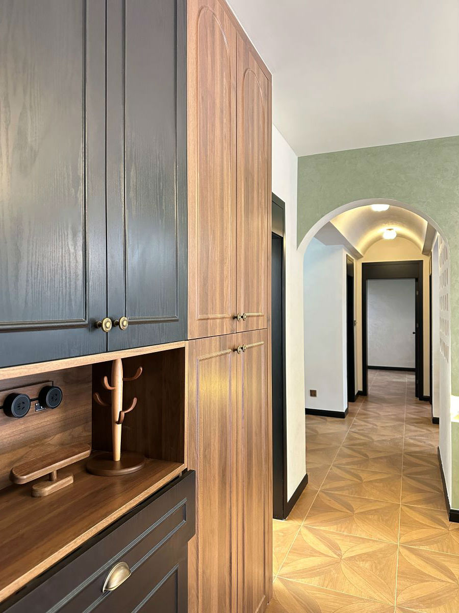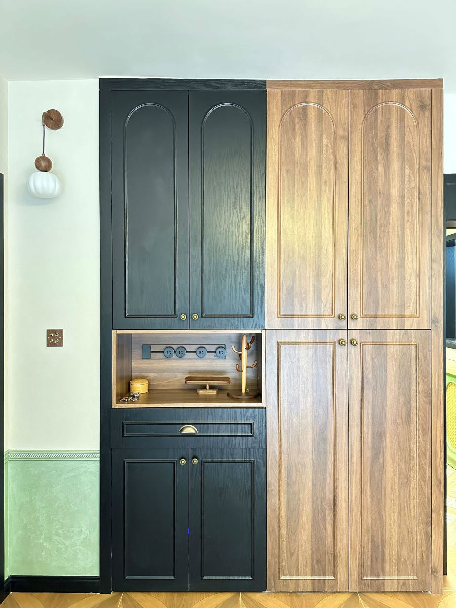 餐厅我们用了木质家具,地面通铺木纹砖,与复古色调的乳胶漆碰撞,复古怀旧的氛围就有了。