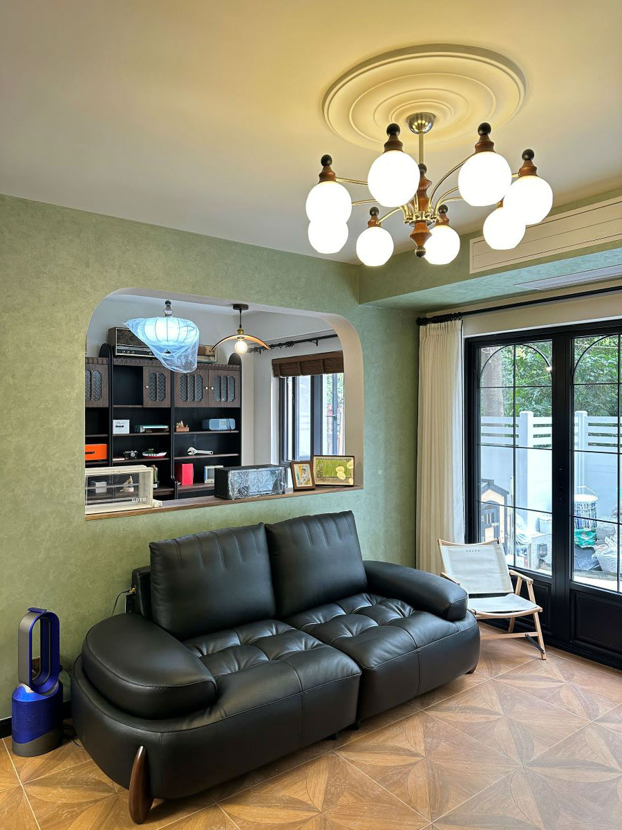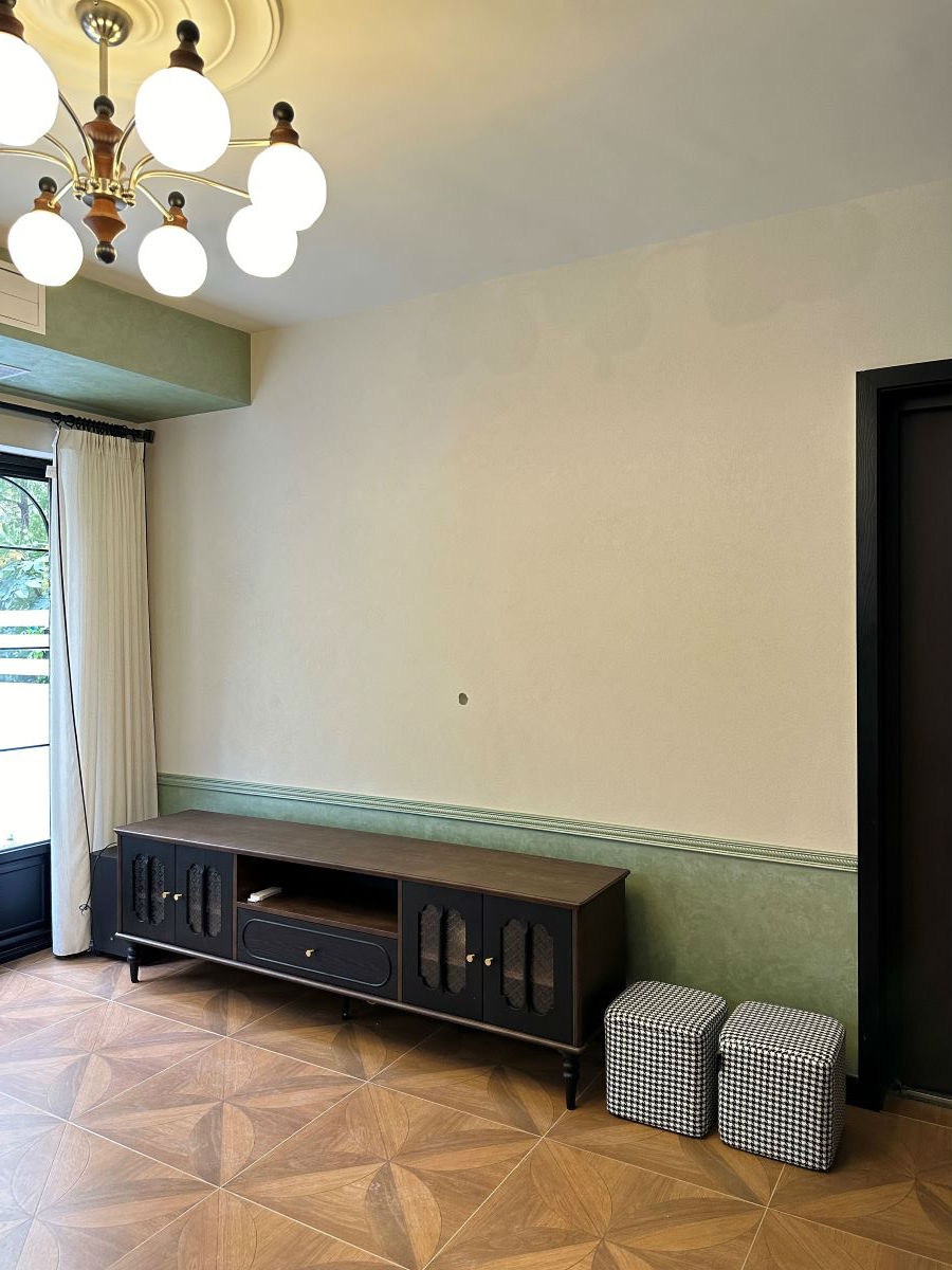 客厅为了增加空间额层次与温度,适当加入了绿色作为点缀,使整个空间既不失优雅,又富有变化。