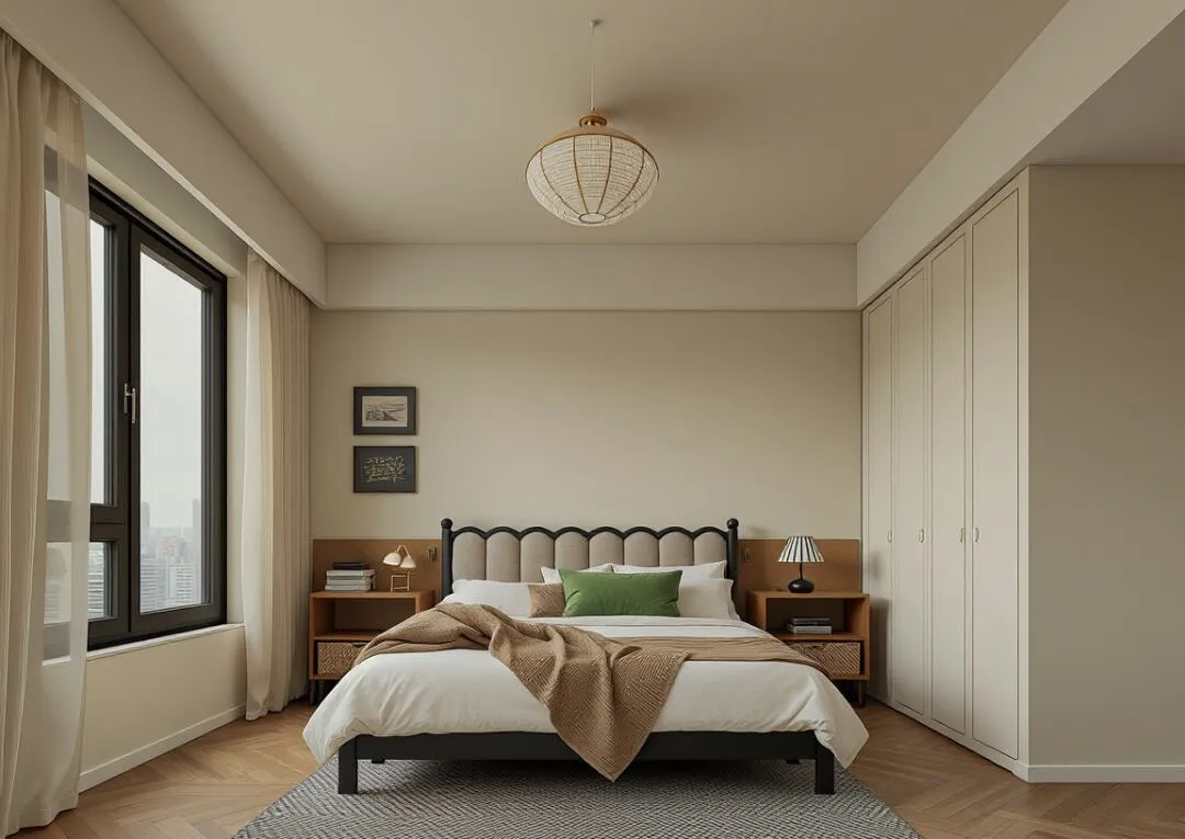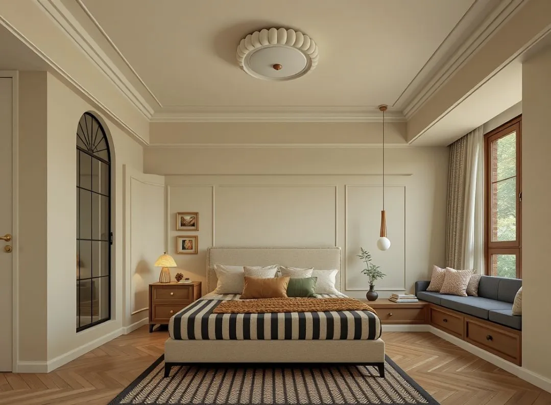 奶油色系与线条的完美结合,营造出一种温馨而又不失格调的氛围。床头的软包设计,不仅舒适无比,更增添了一份法式的奢华感。