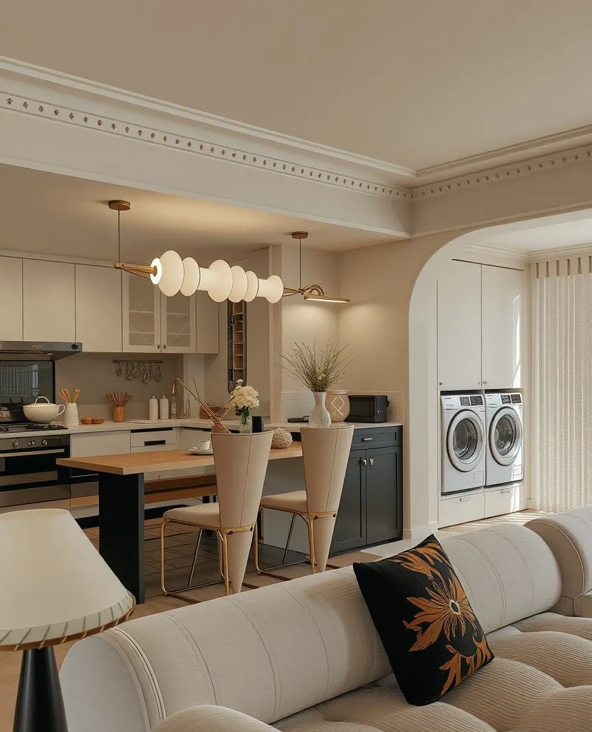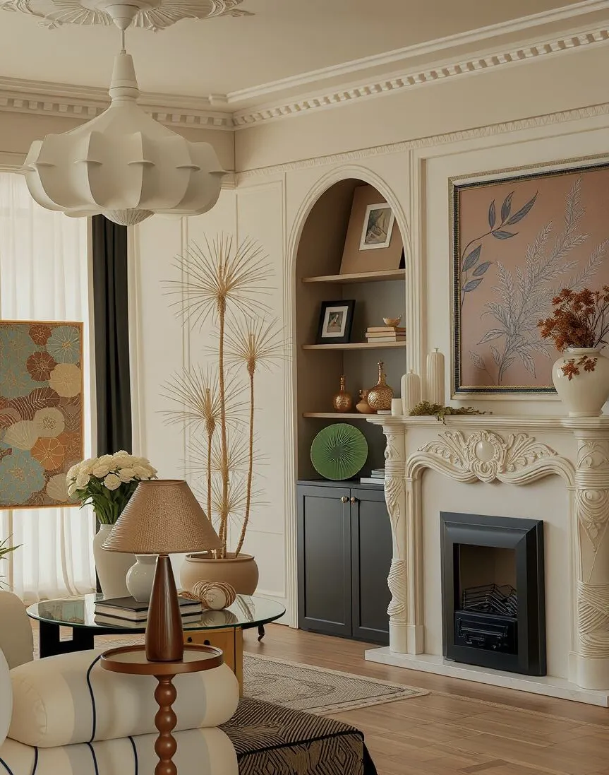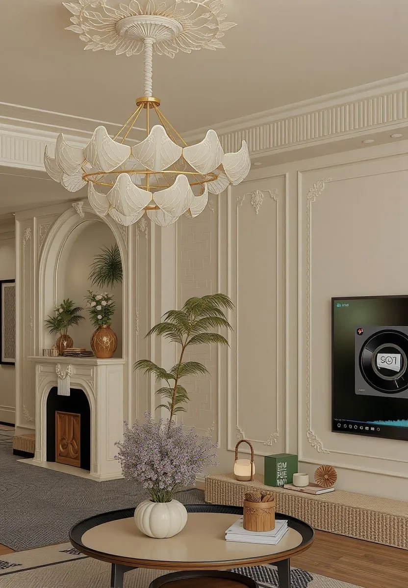走进客厅,一股淡淡的奶油香氛扑面而来。整个空间采用了全开放的设计,让自然光尽情地洒落,延伸了视觉的层次感,整体看起来通透又显大!石膏线条的勾勒,让墙面充满了艺术感,每一个细节都透露着法式的精致与浪漫。