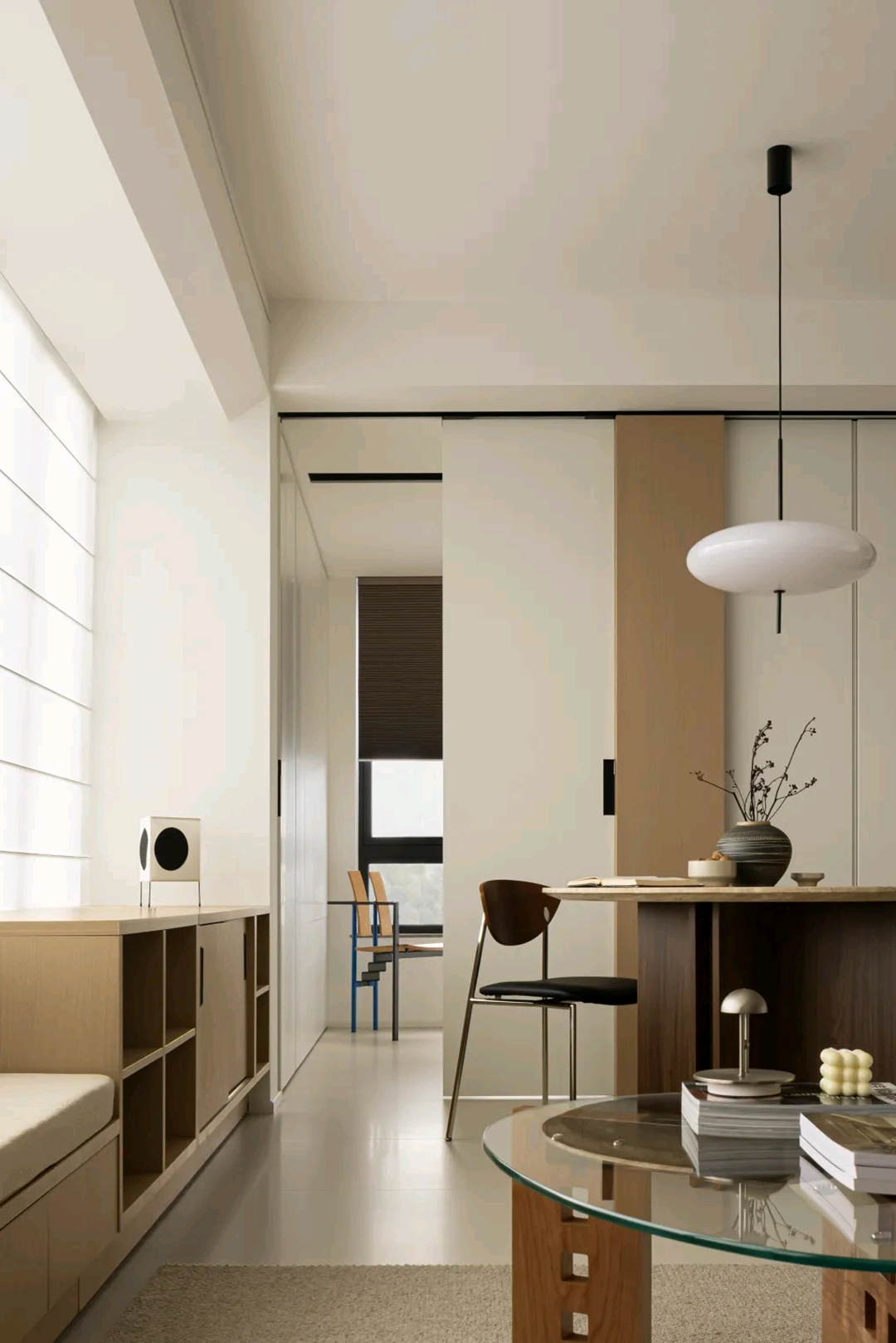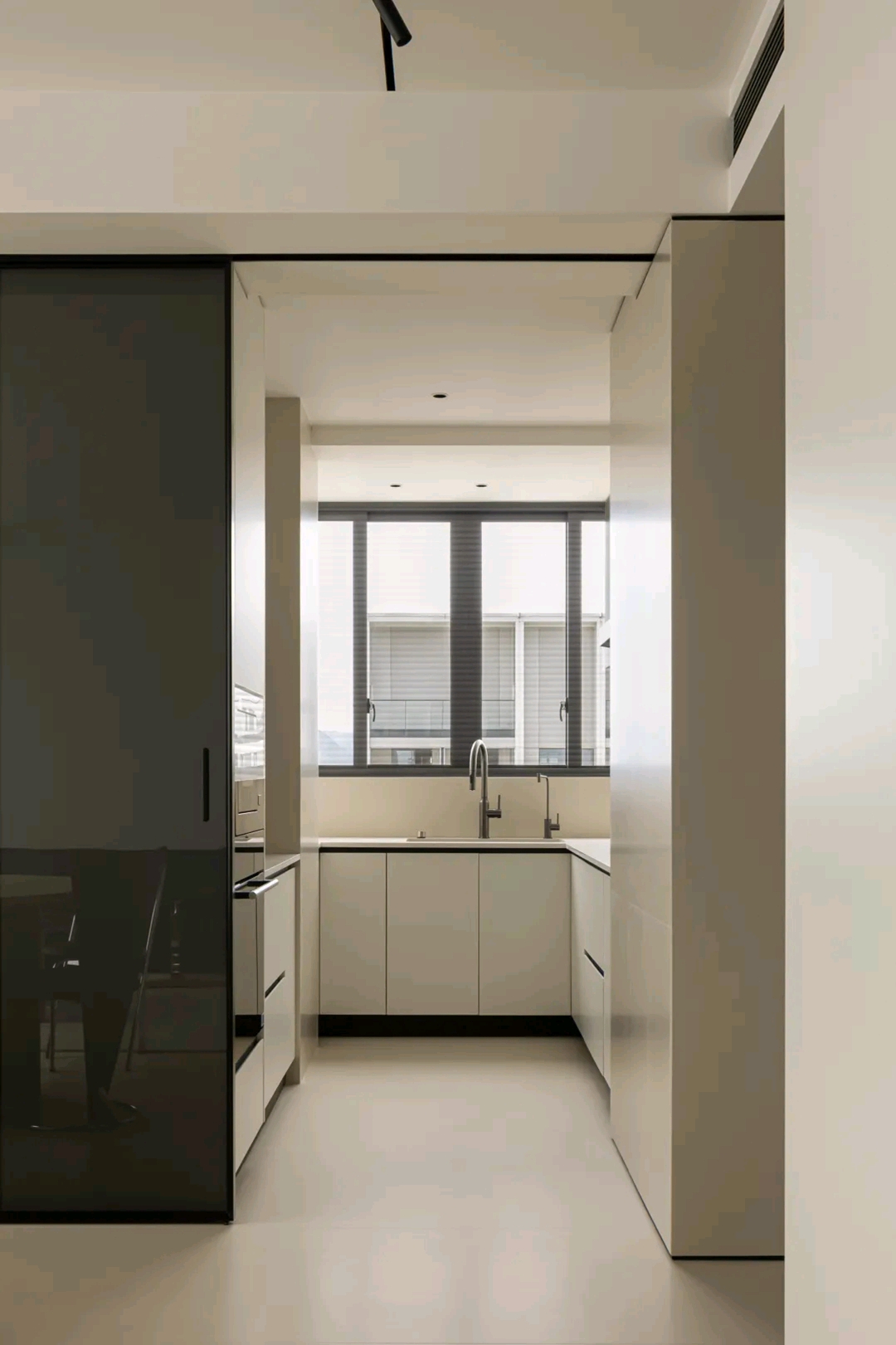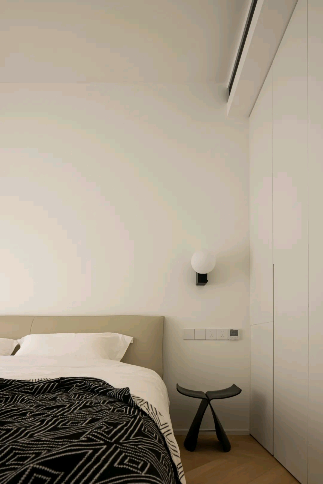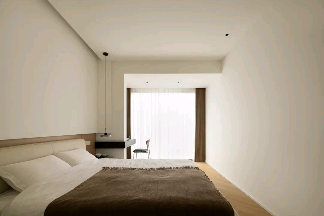 北边的卧室被设计成一间小卧室,空间的整体河游动线十分灵活且高效,这也在一定程度上消除了空间的闭塞感。。