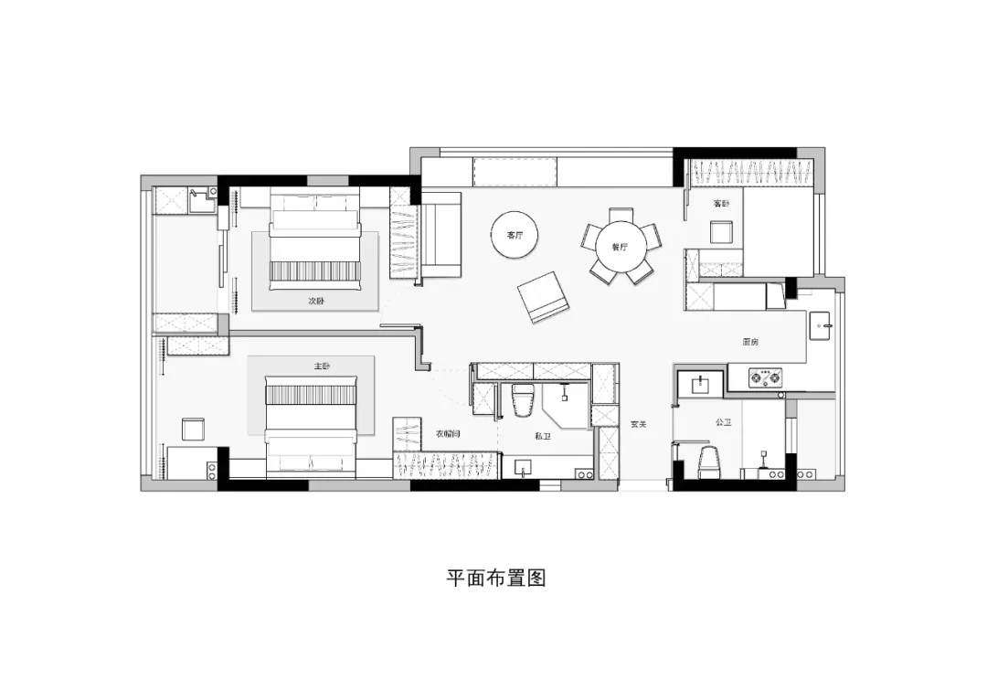 餐厅和客厅实现了无缝衔接,几乎没有明确的划分,二者在同一空间中并存,这也消除了传统空间划分带来的局促感。