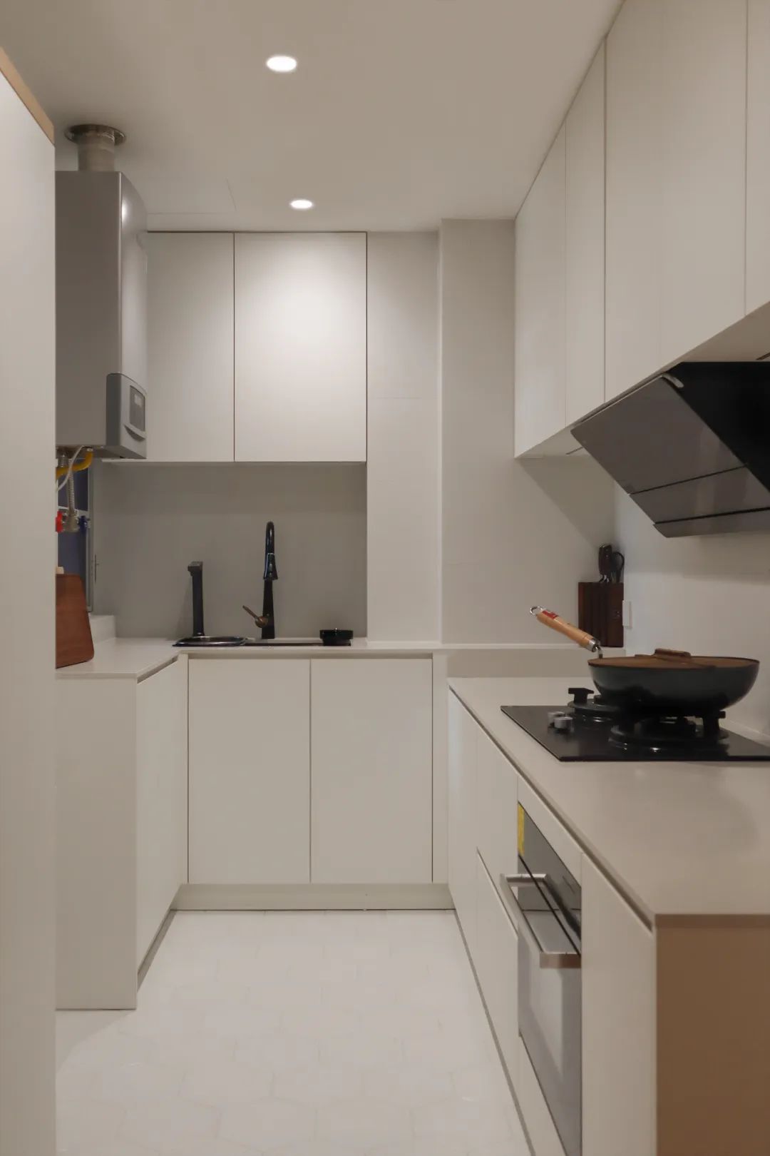 U字型的厨房布局充分考虑了屋主一家的烹饪习惯,并量身定制了高低台面,这对于经常下厨的人来说,是非常贴心的设计细节。