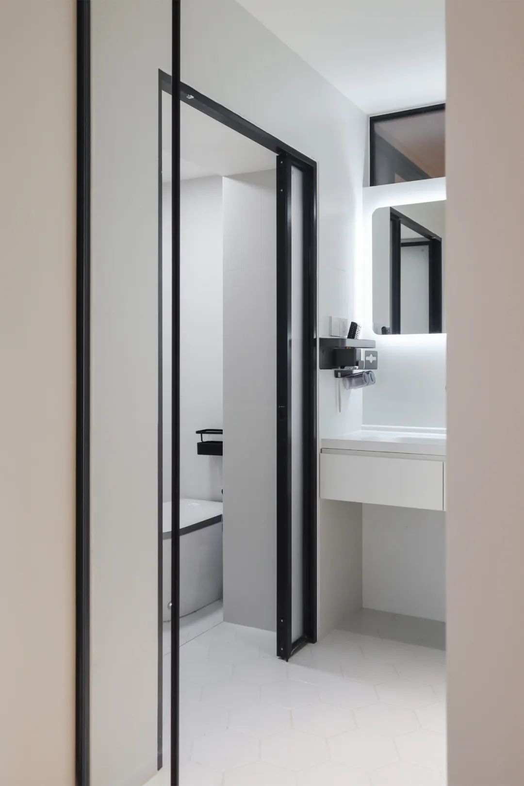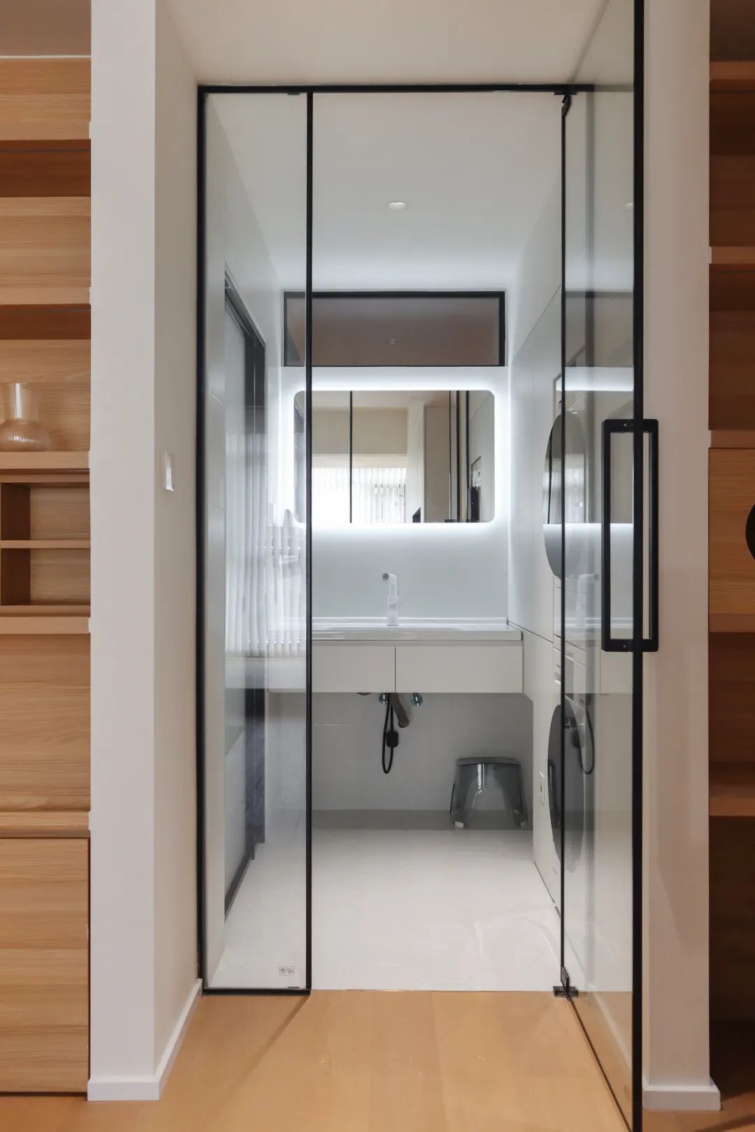 卫浴空间的改造是家里的又一处亮点,多功能收纳柜的加入,让这里从一间狭小的卫生间,实现了三分离的效果。