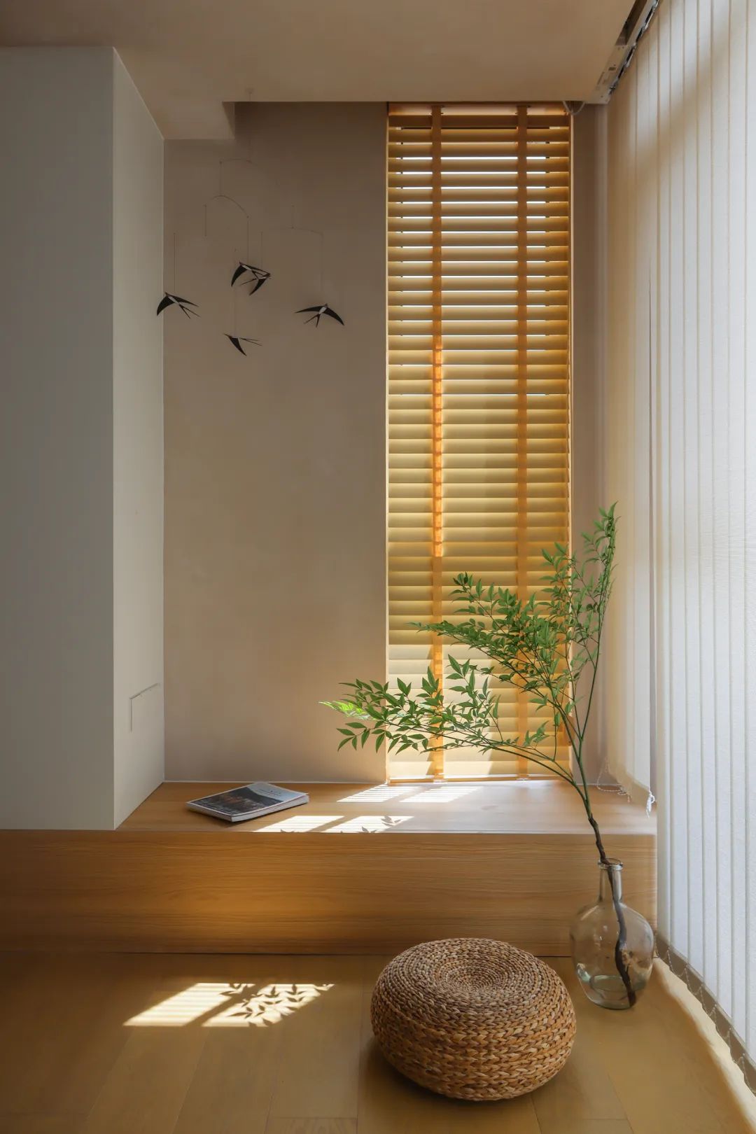 以往被遗忘的阳台墙垛,稍加修饰就成了家中又一个休闲阅读区,读一本书,和猫咪一起晒晒太阳,都是不错的选择。