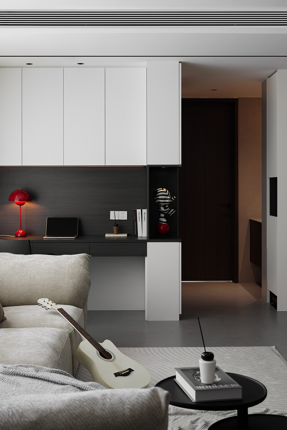 次卧以榻榻米搭配书桌,合理地利用了小空间,功能性与美观性兼具。