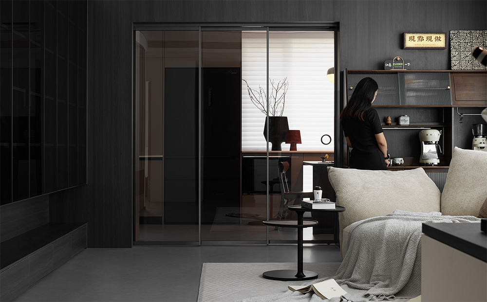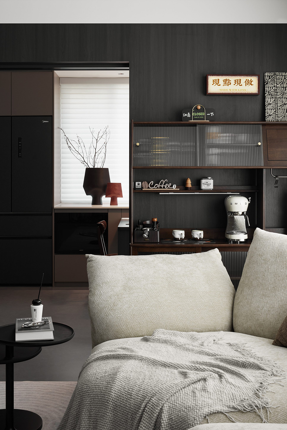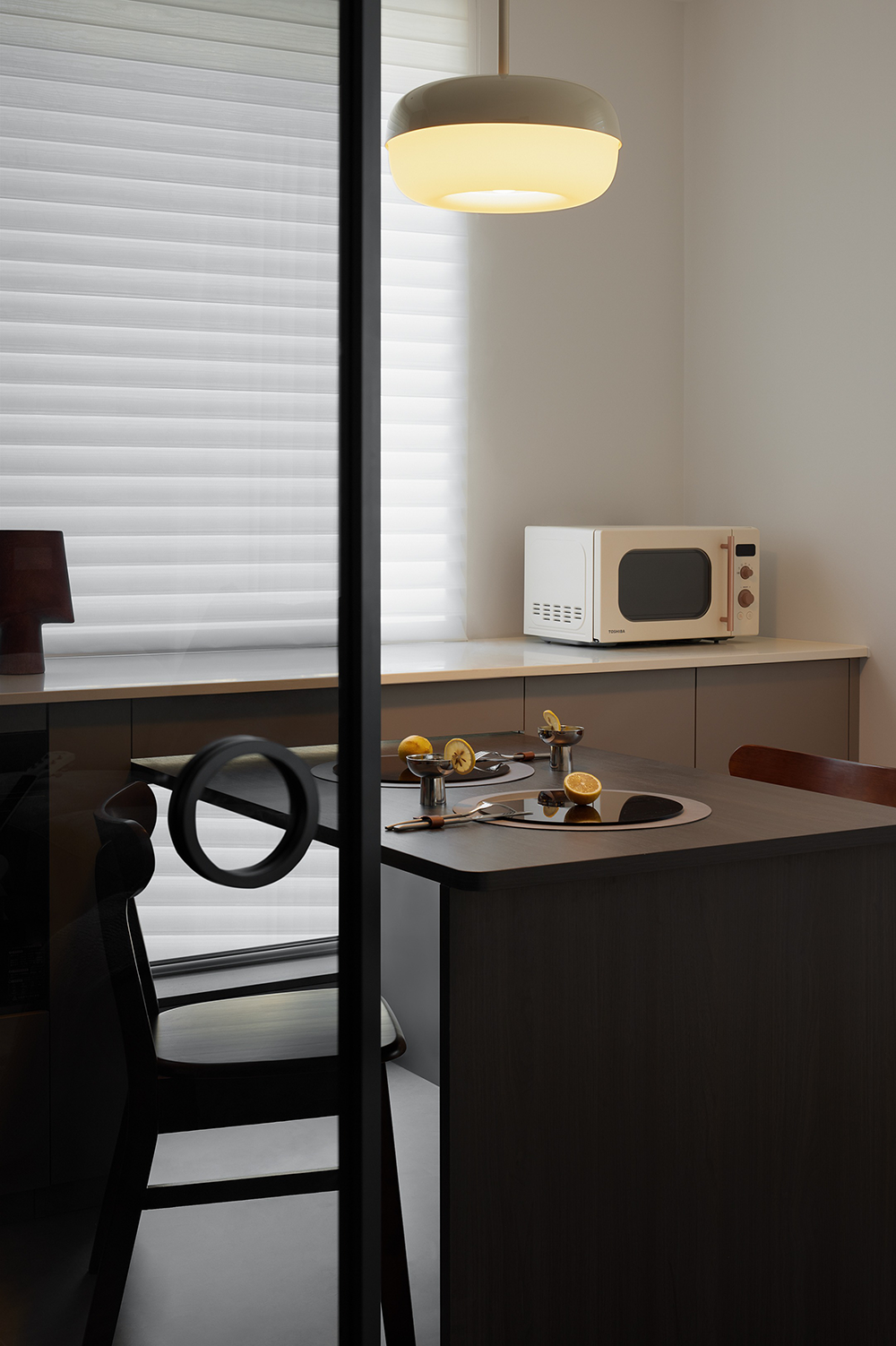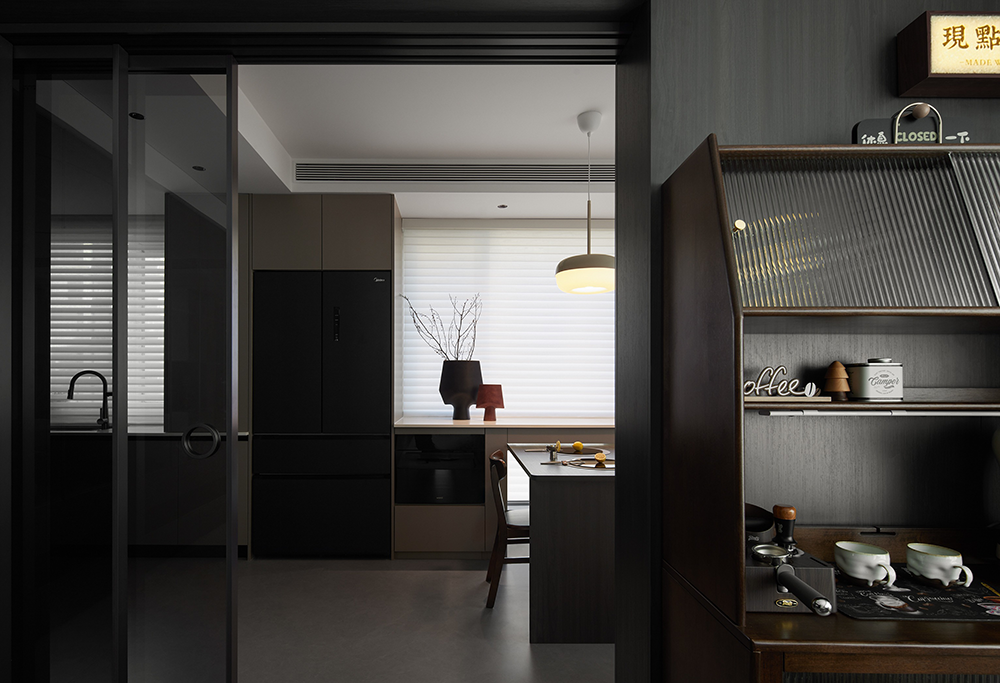 三联动的玻璃门巧妙地分割了客厅空间跟餐厅空间,嵌入式的岛台节省了餐厅空间,搭配开放式的厨房,餐厅和厨房的利用空间大大增加。
