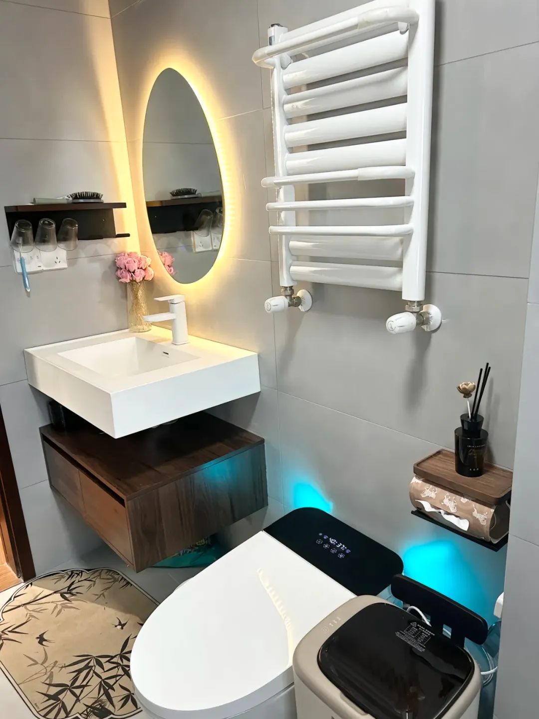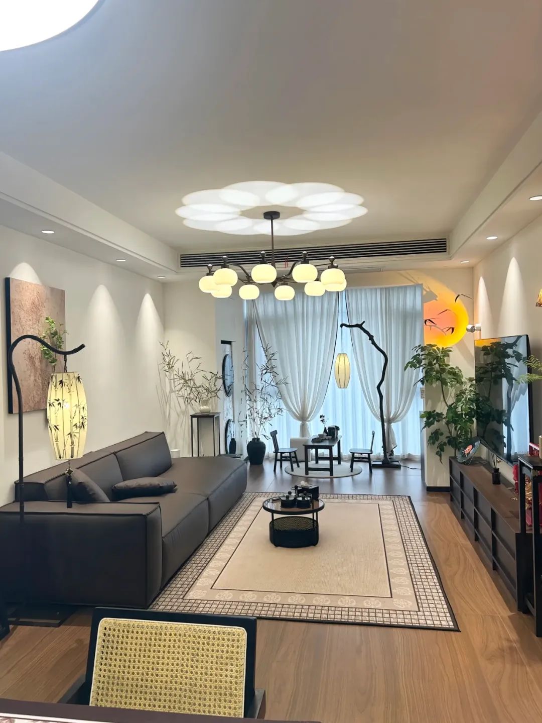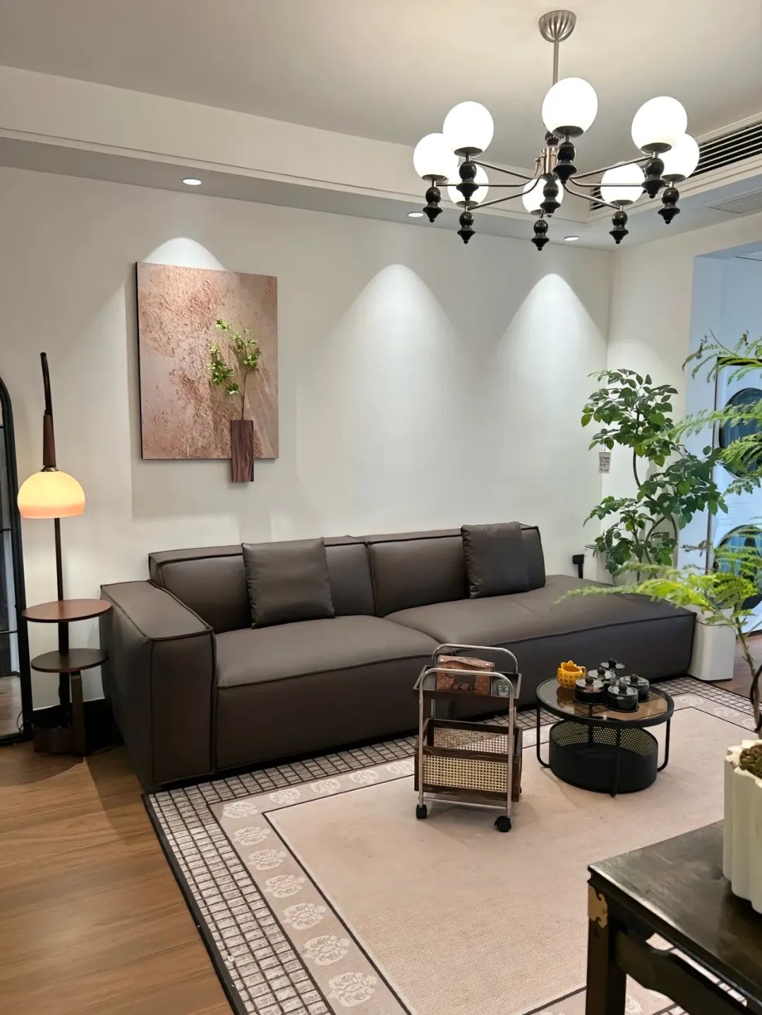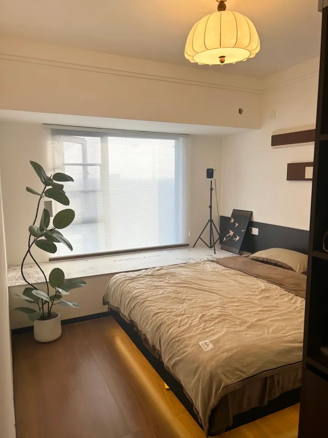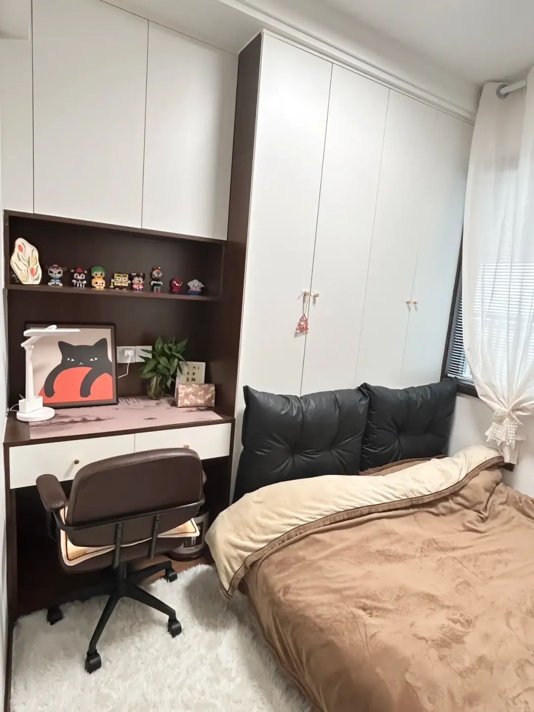 全屋定制了胡桃木+暖白色鞋柜和餐边柜,鞋柜和餐边柜连接处隐藏了厨房的折叠门,