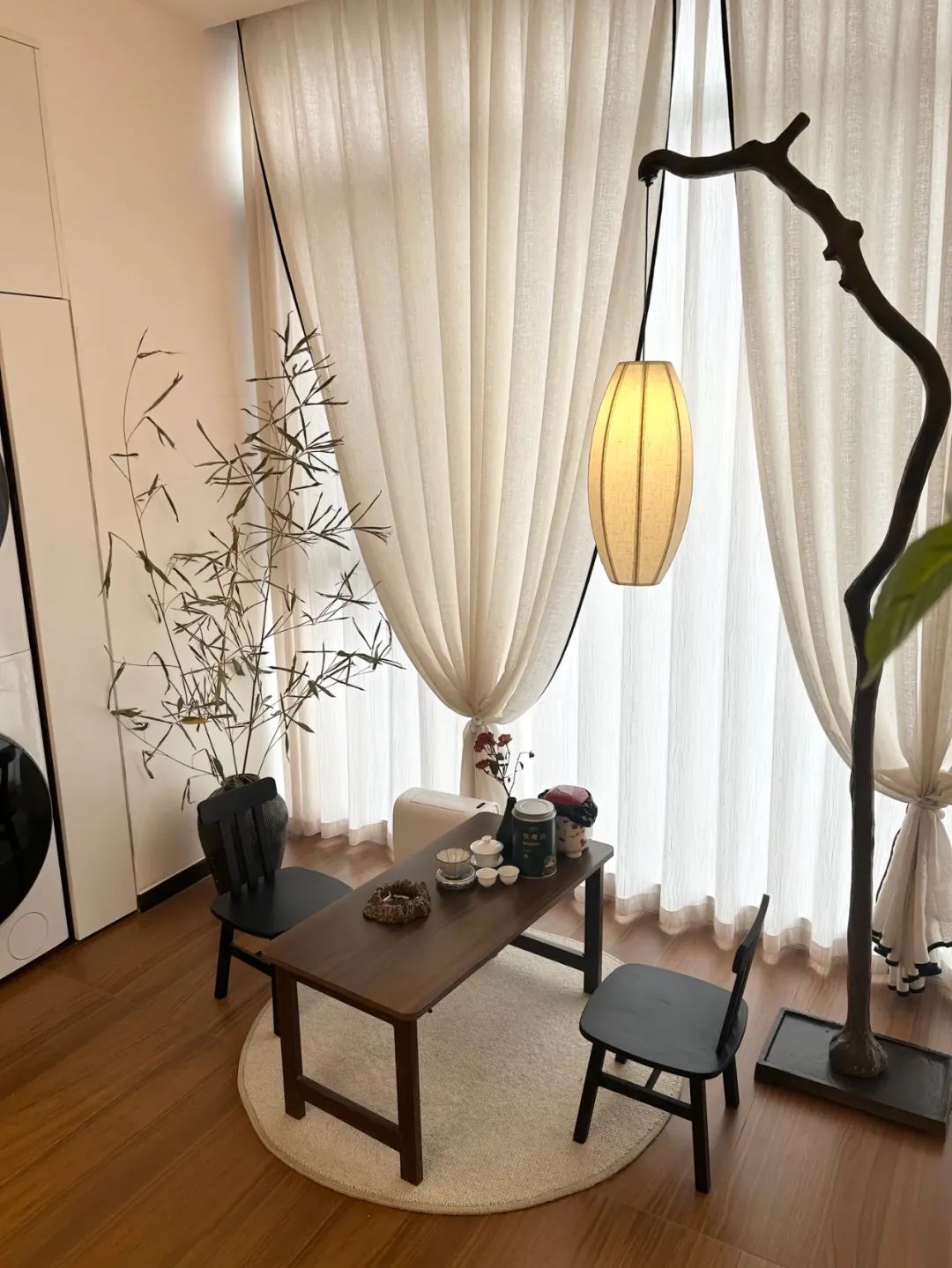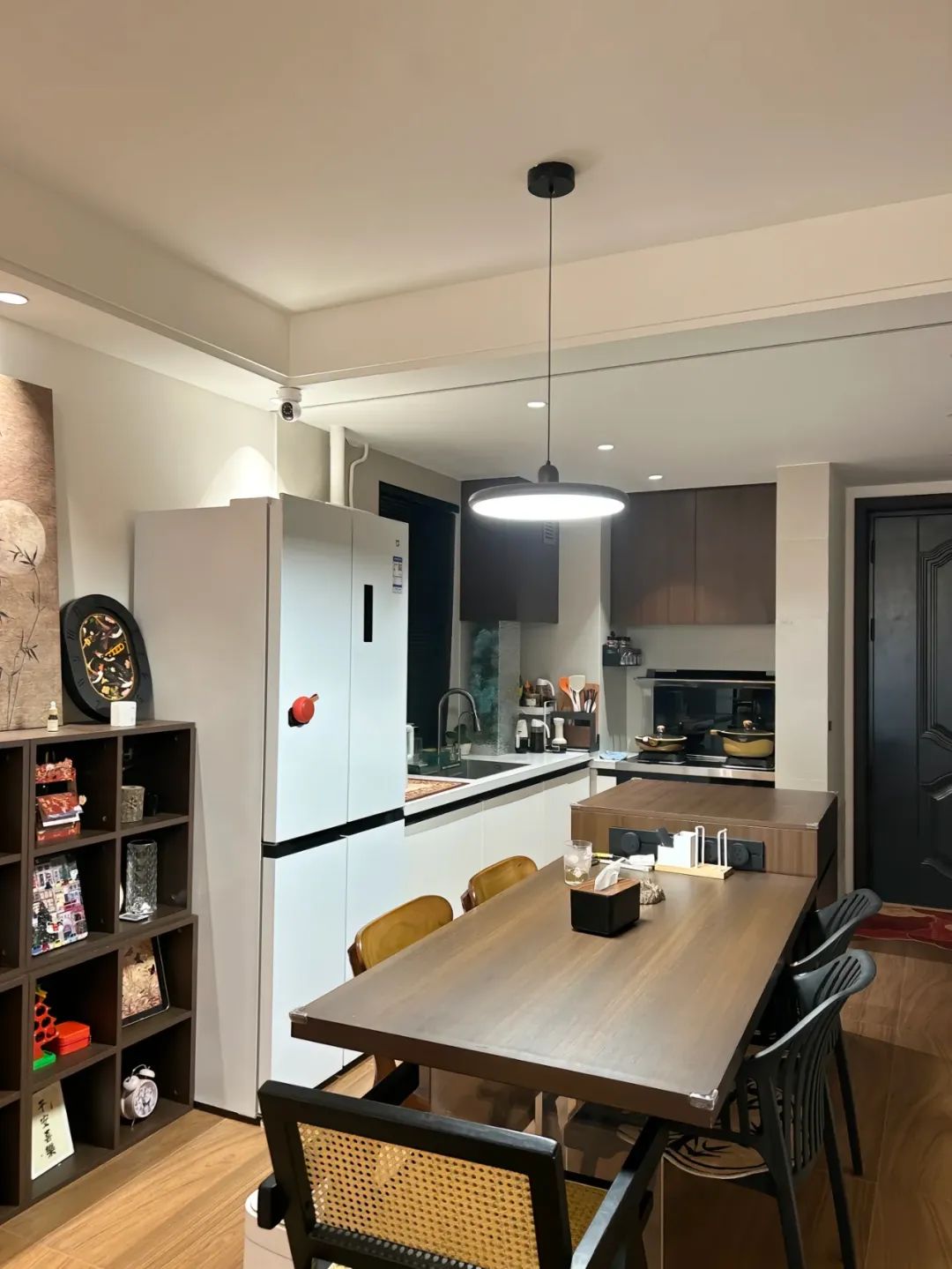 为了全屋的胡桃木色一个颜色,用门板加亚克力桌腿DIY的岛台餐桌,性价比超高,