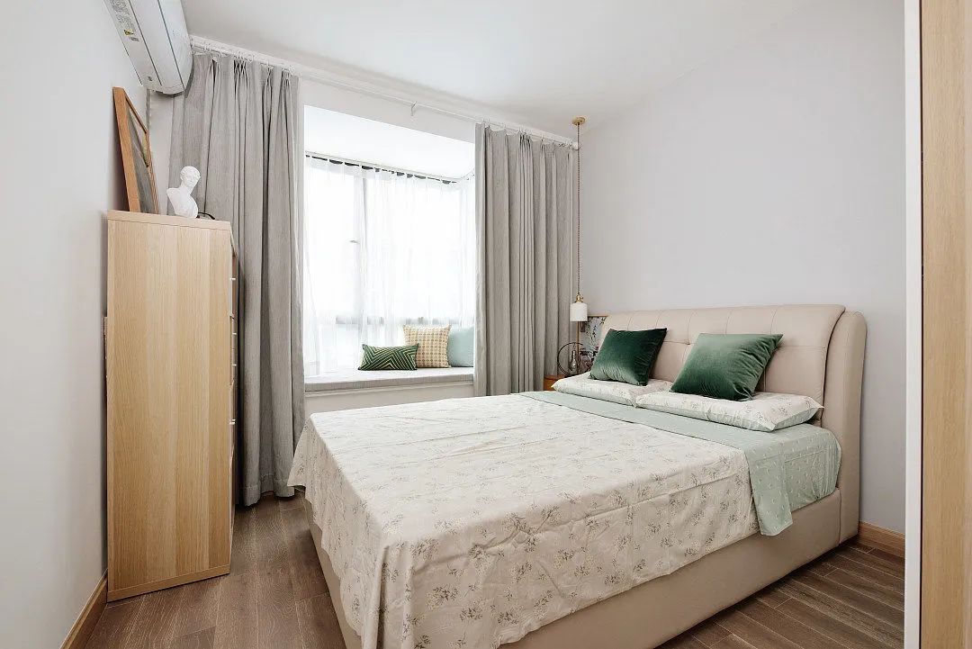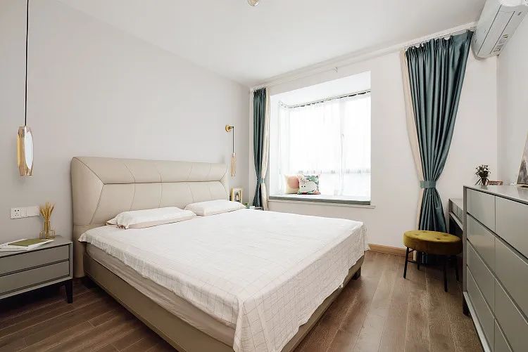 次卧柔和清爽,以中性灰为主调,没有过多的装饰,让空间更具弹性,为后期调整带来无限可能