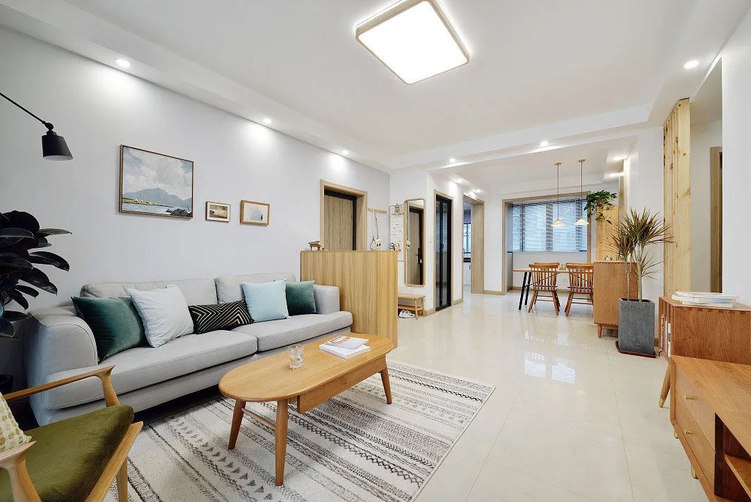 因为玄关进门面对的就是卫生间,为了规避进门直视卫生间,过道增加杉设计隔断,规避户型问题,也不太影响空间通透视觉感。