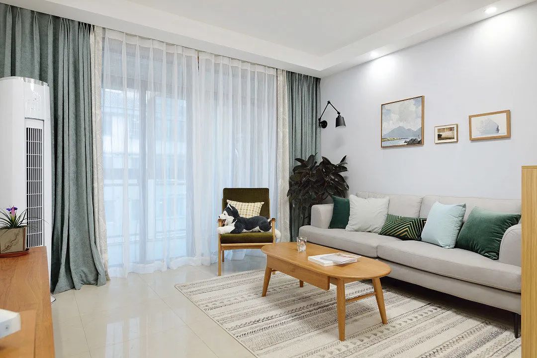 简约风格客厅,房间内的色调以浅色系为主,墙壁以白色为主,地板铺浅色的瓷砖。