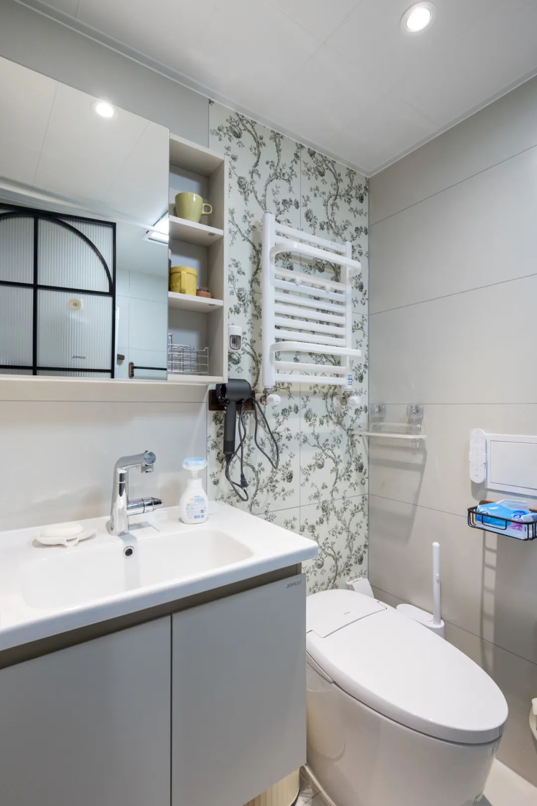 卫生间虽小但五脏俱全,马桶区墙砖选择浅绿小花砖,让空间生机盎然,更有领域感。