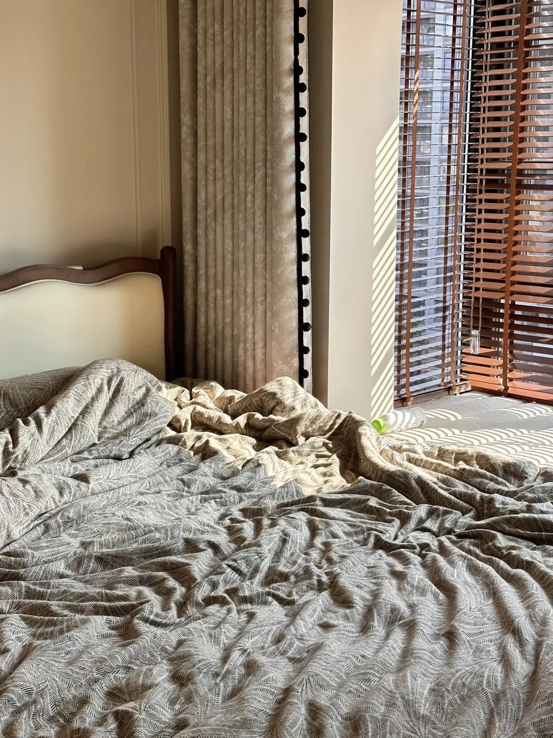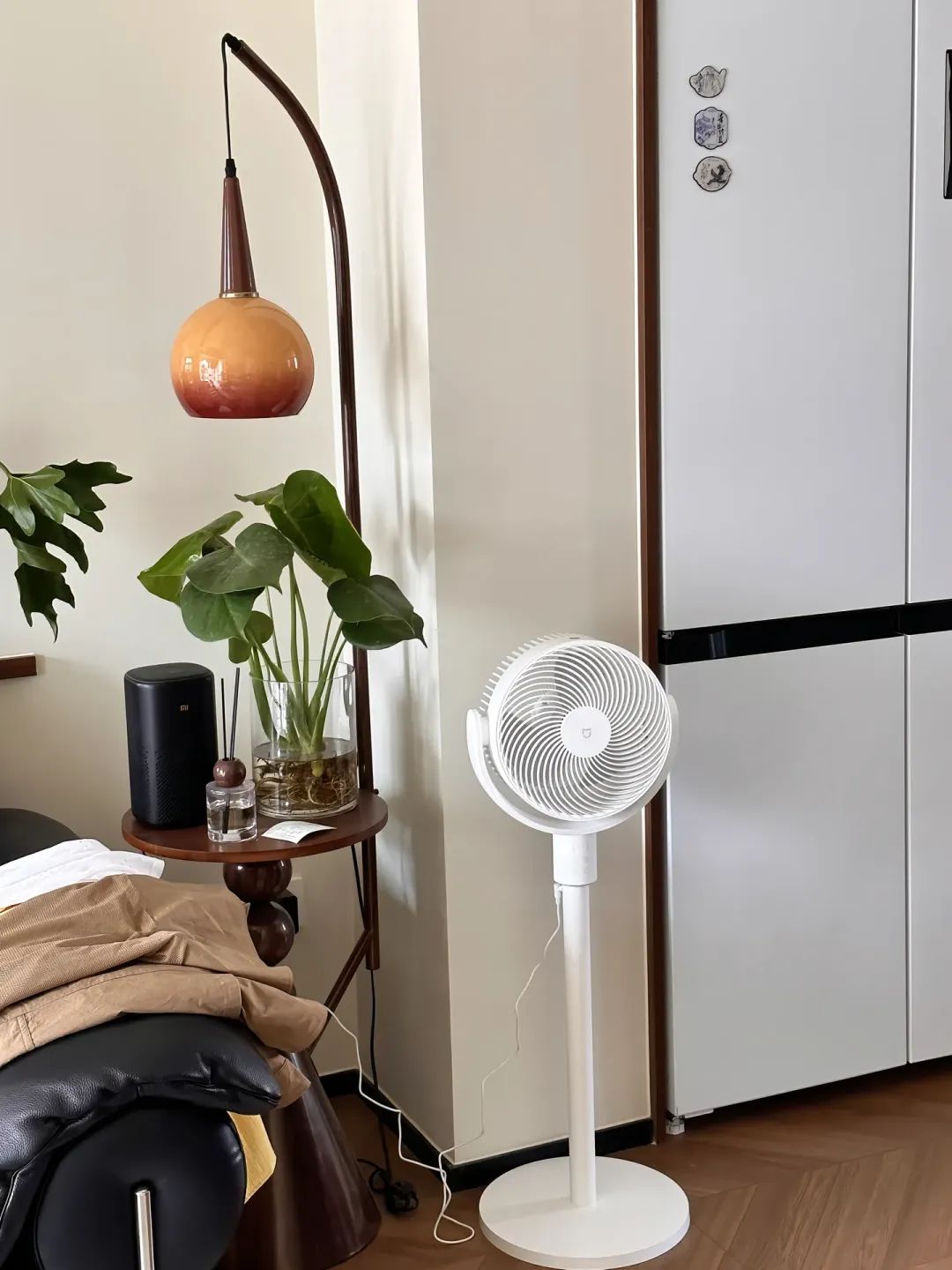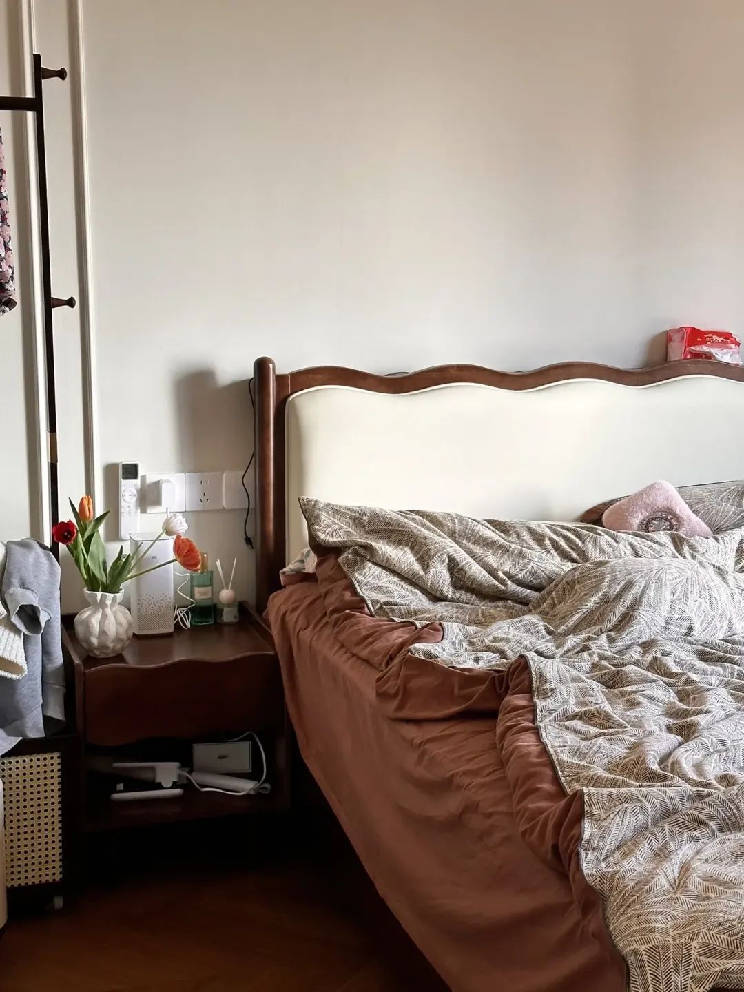 全屋通铺木纹砖,电视背景墙是简单的大白墙,放置屋主喜欢的绿植。