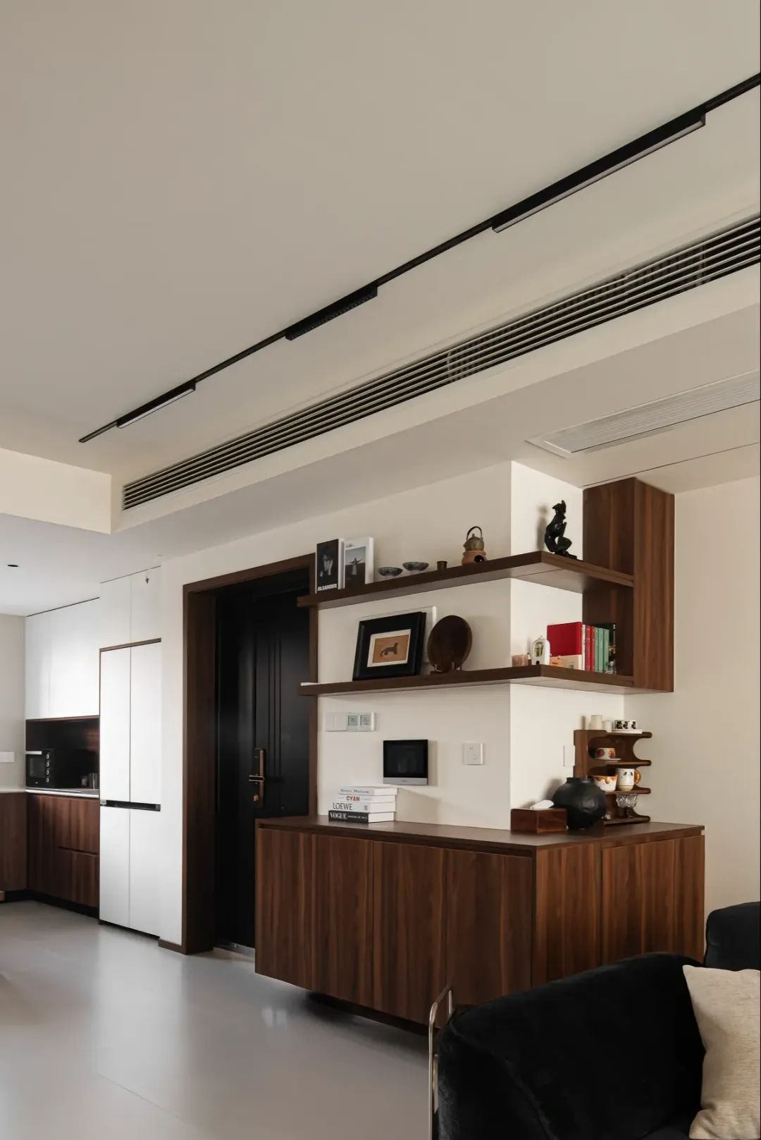 房屋整体装修遵循棕白黑配色法,装出了一个温馨感十足的家。