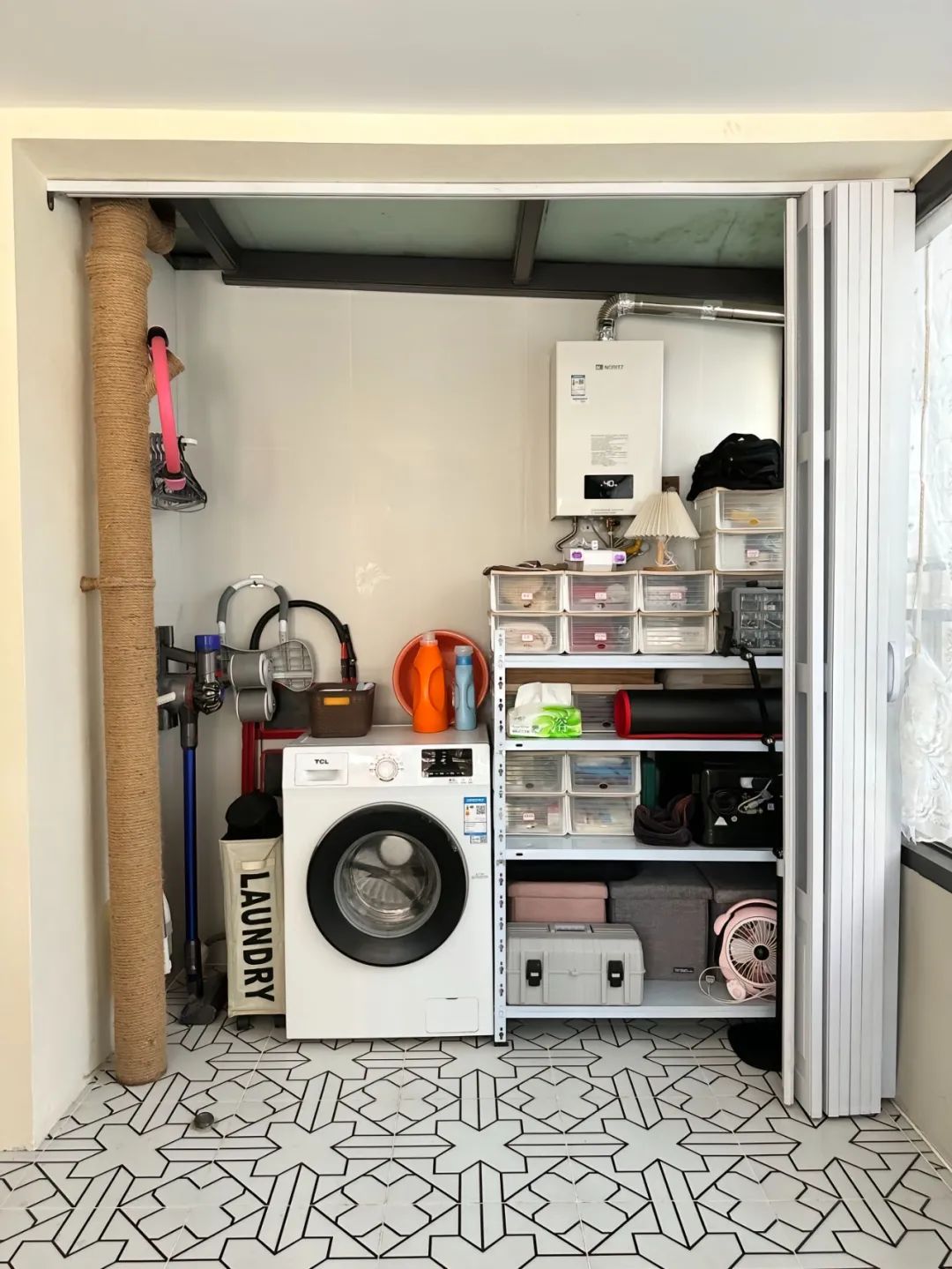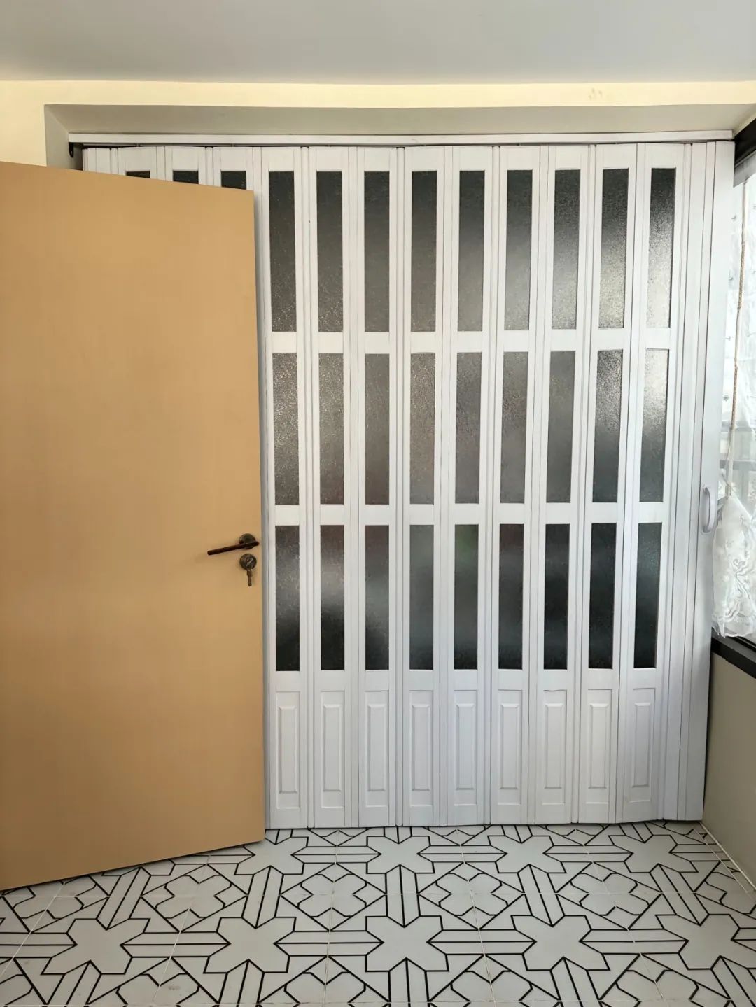 阳光房用PVC折叠门隔出来一个储藏间。