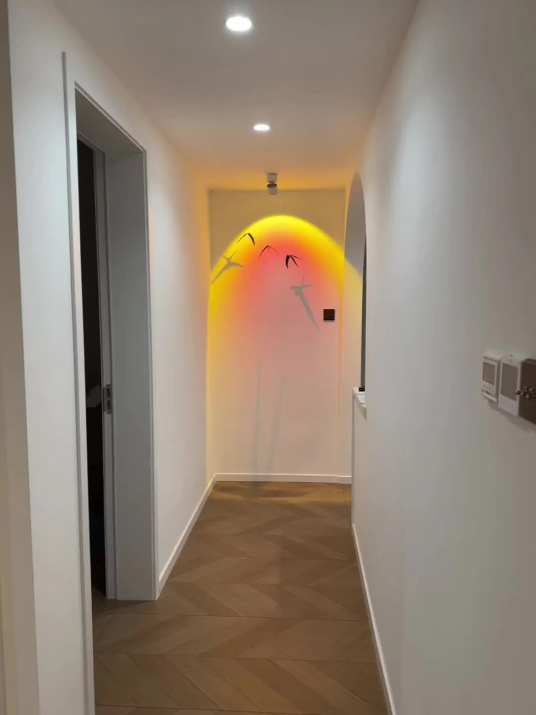 次卧不做吊顶,只做了窗帘盒走了一圈虎头石膏线.