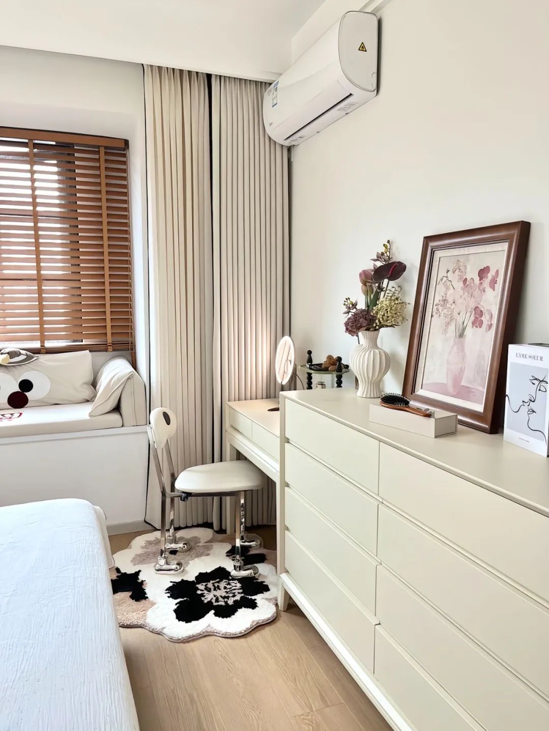 13平方的主卧,1米8的床,两个床头柜,一个床尾柜,布局刚刚好。
