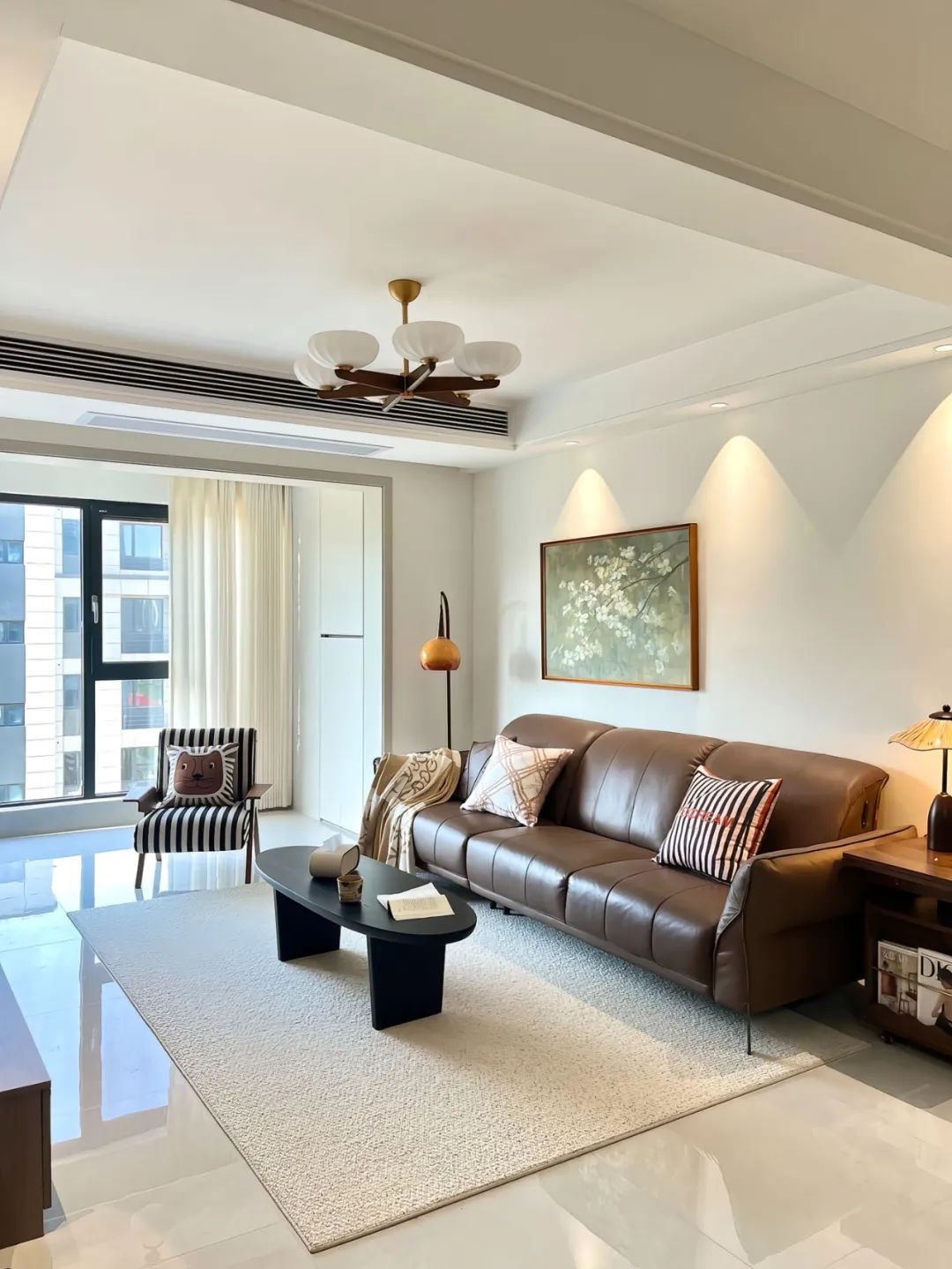 沙发长2.8米,用80×80的画装饰沙发背景墙,简约耐看。