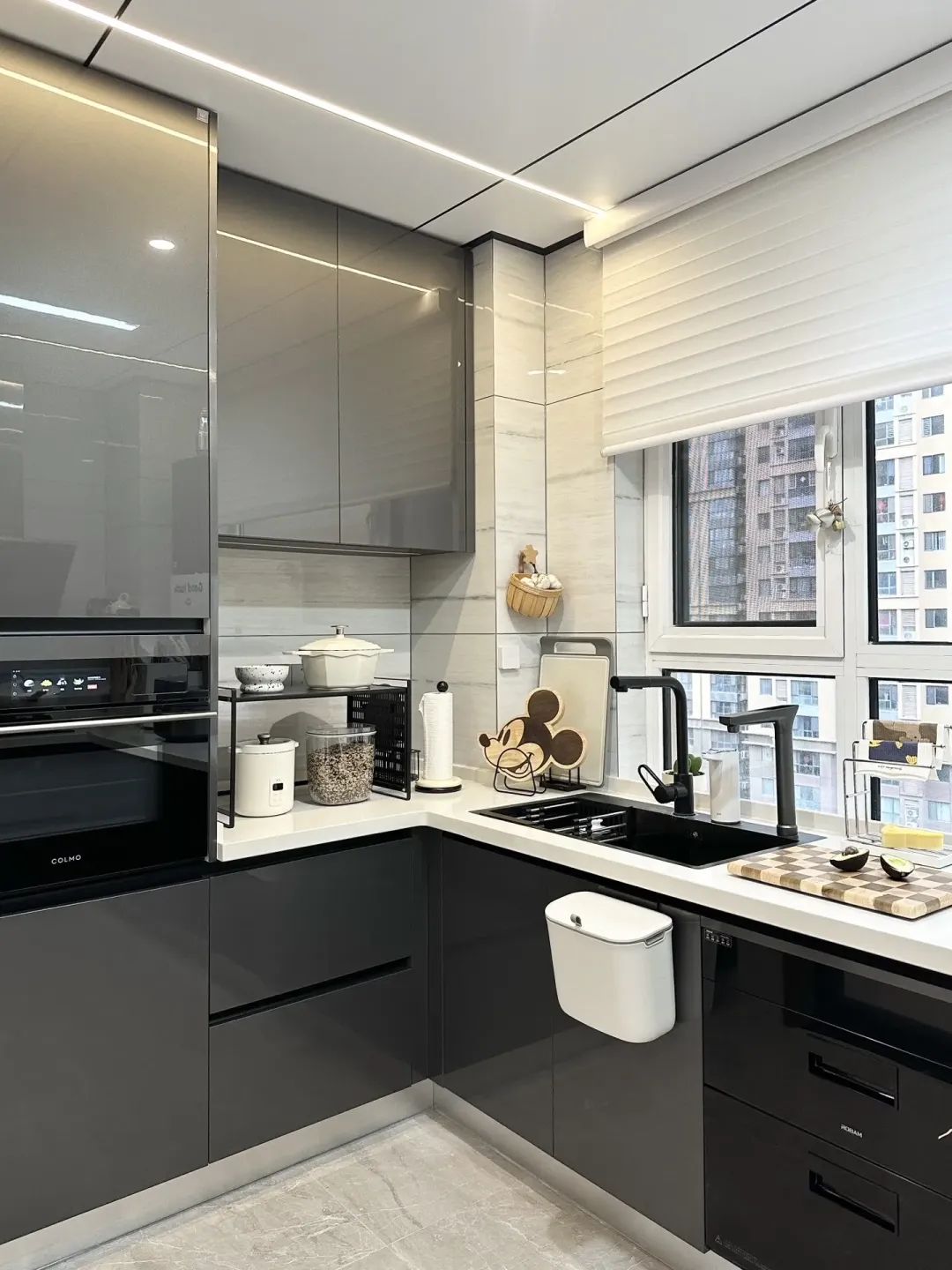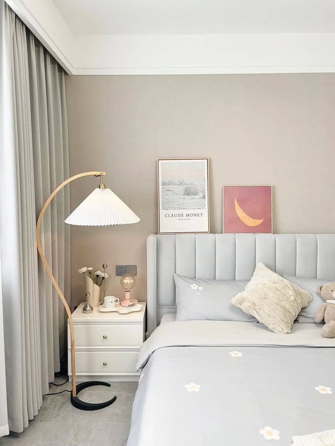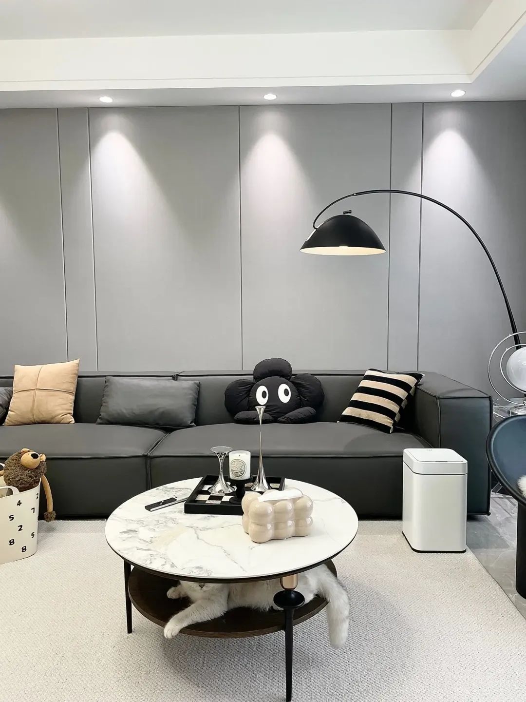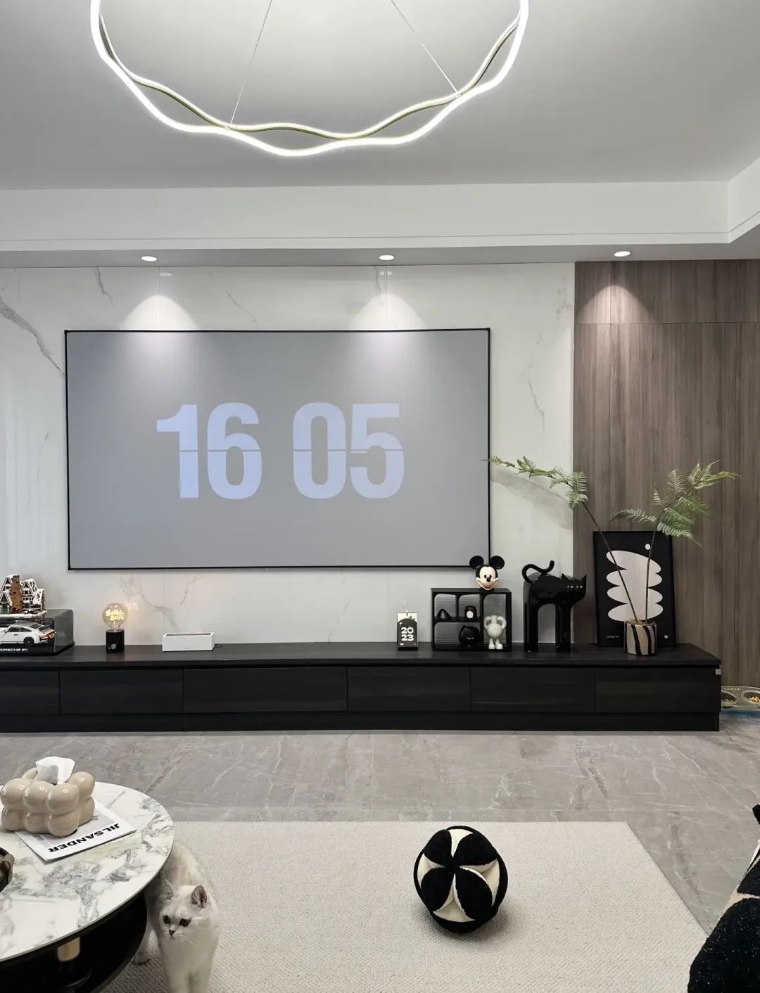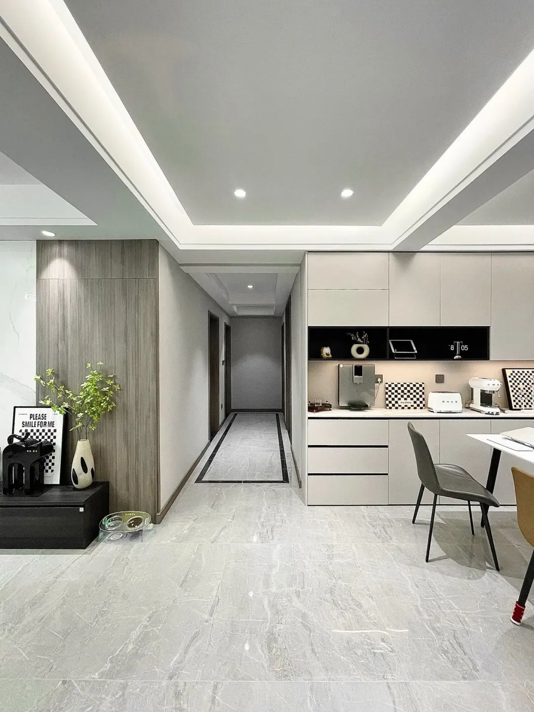 地面干净敞亮,选择全屋通铺,美缝选择和瓷砖接近,这样视觉效果更显大。