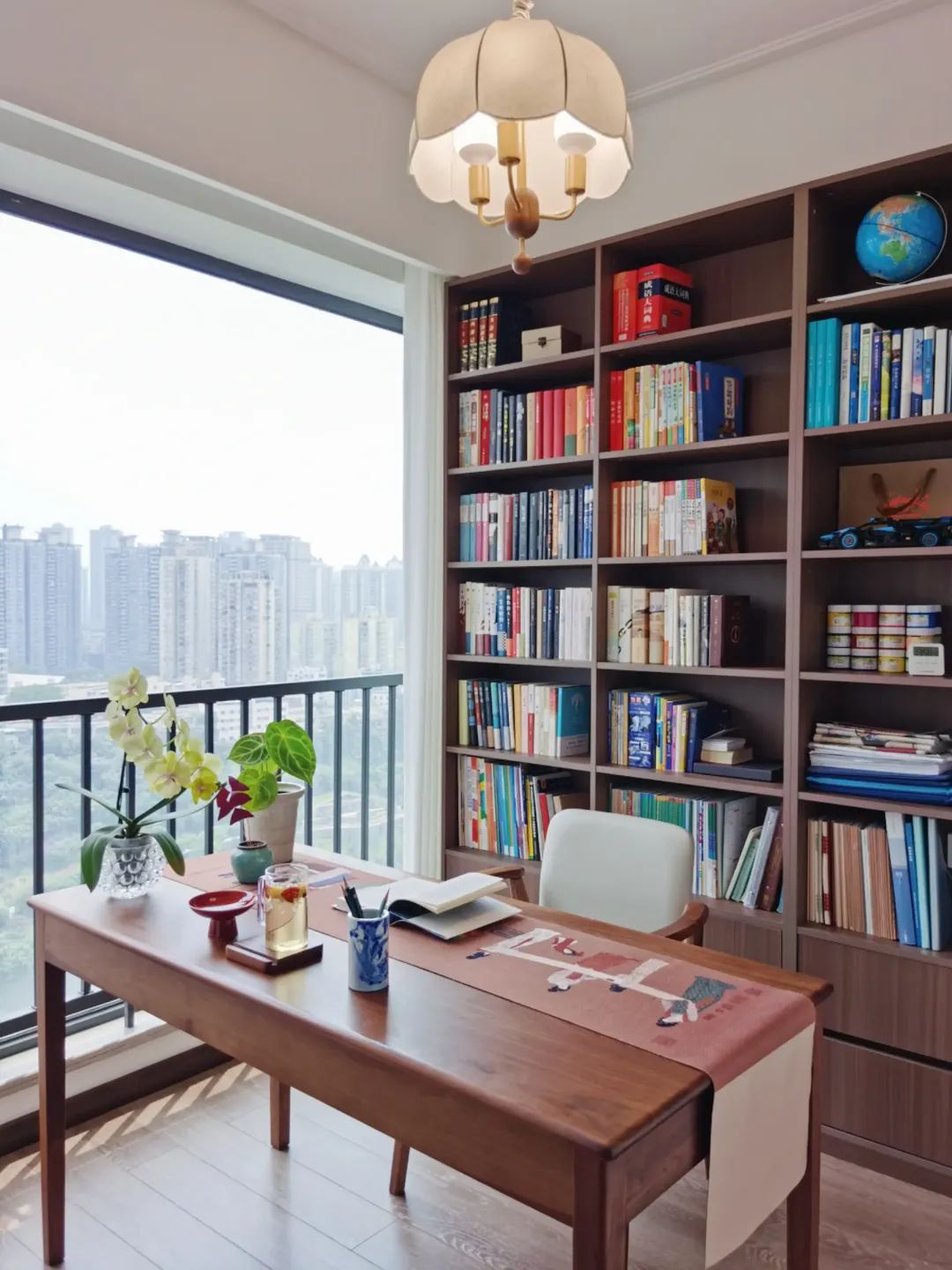 阳台放置一张书桌,平时可用于学习办公