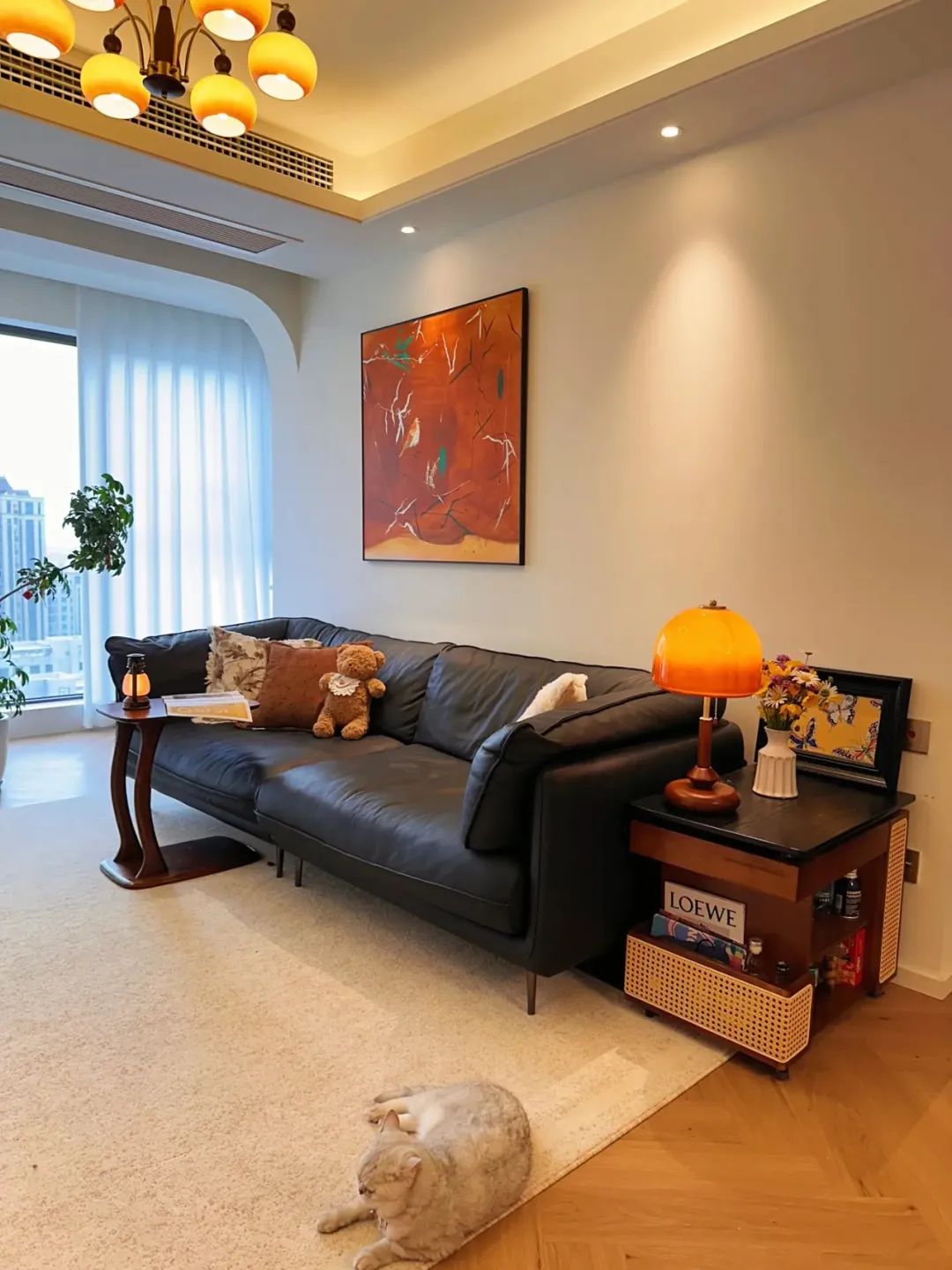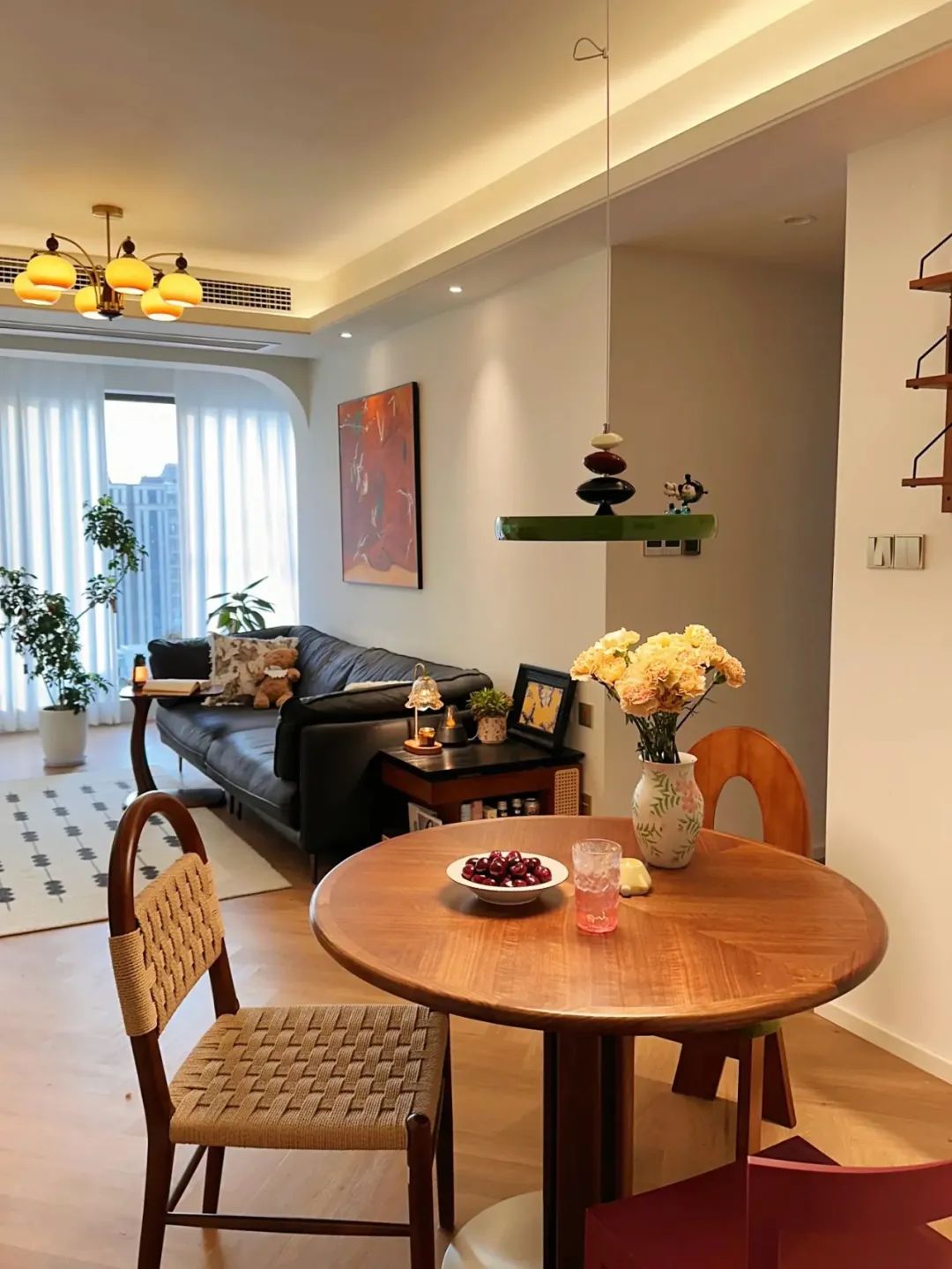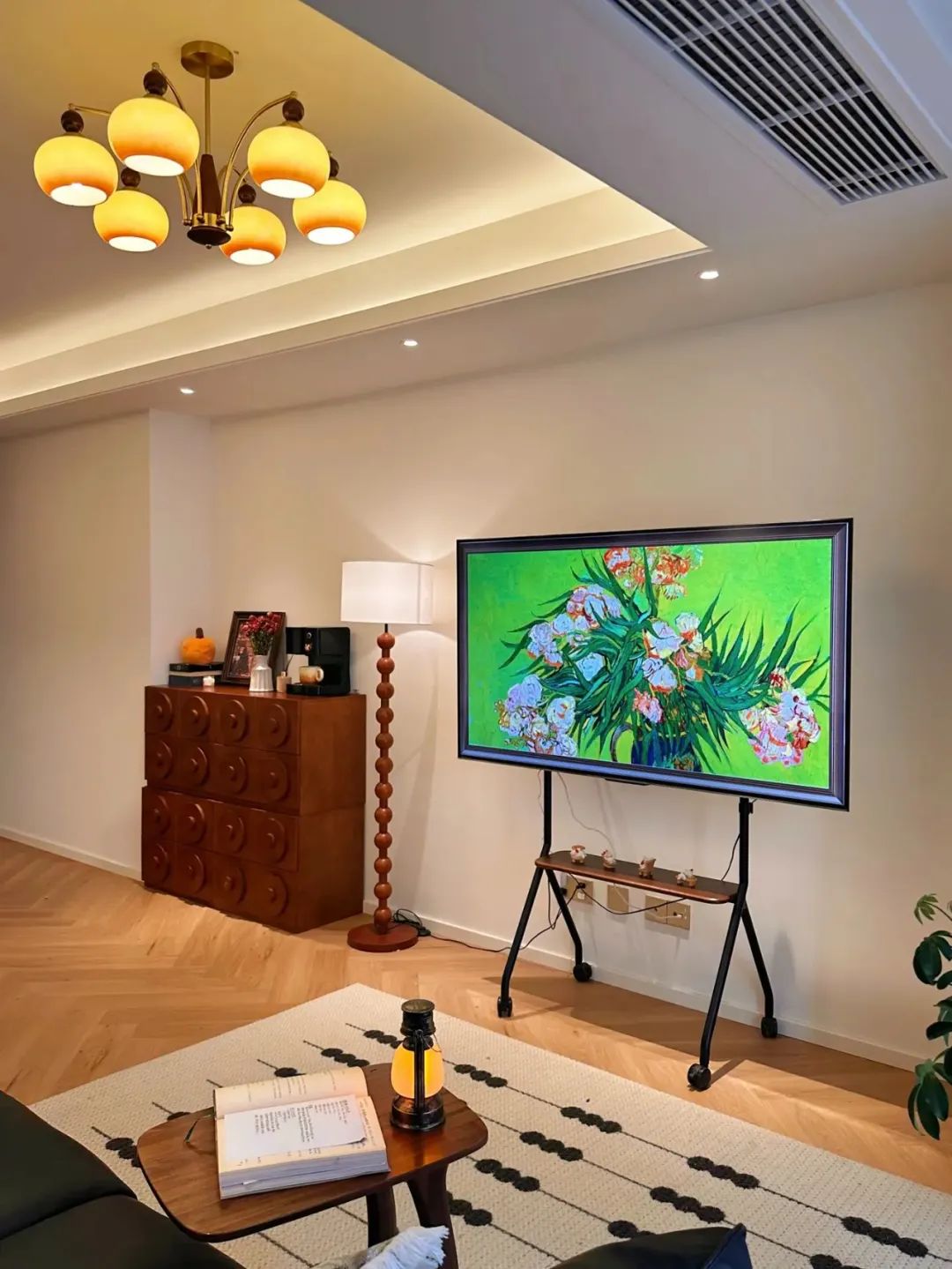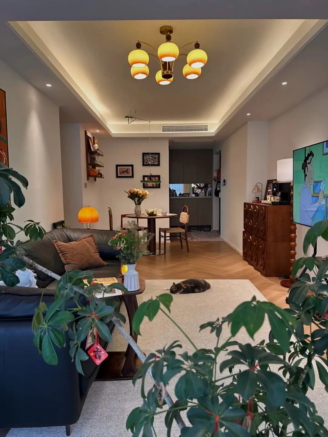 客厅灯六头柿子灯,层高不是很高也不会压抑,灯光柔和不刺眼