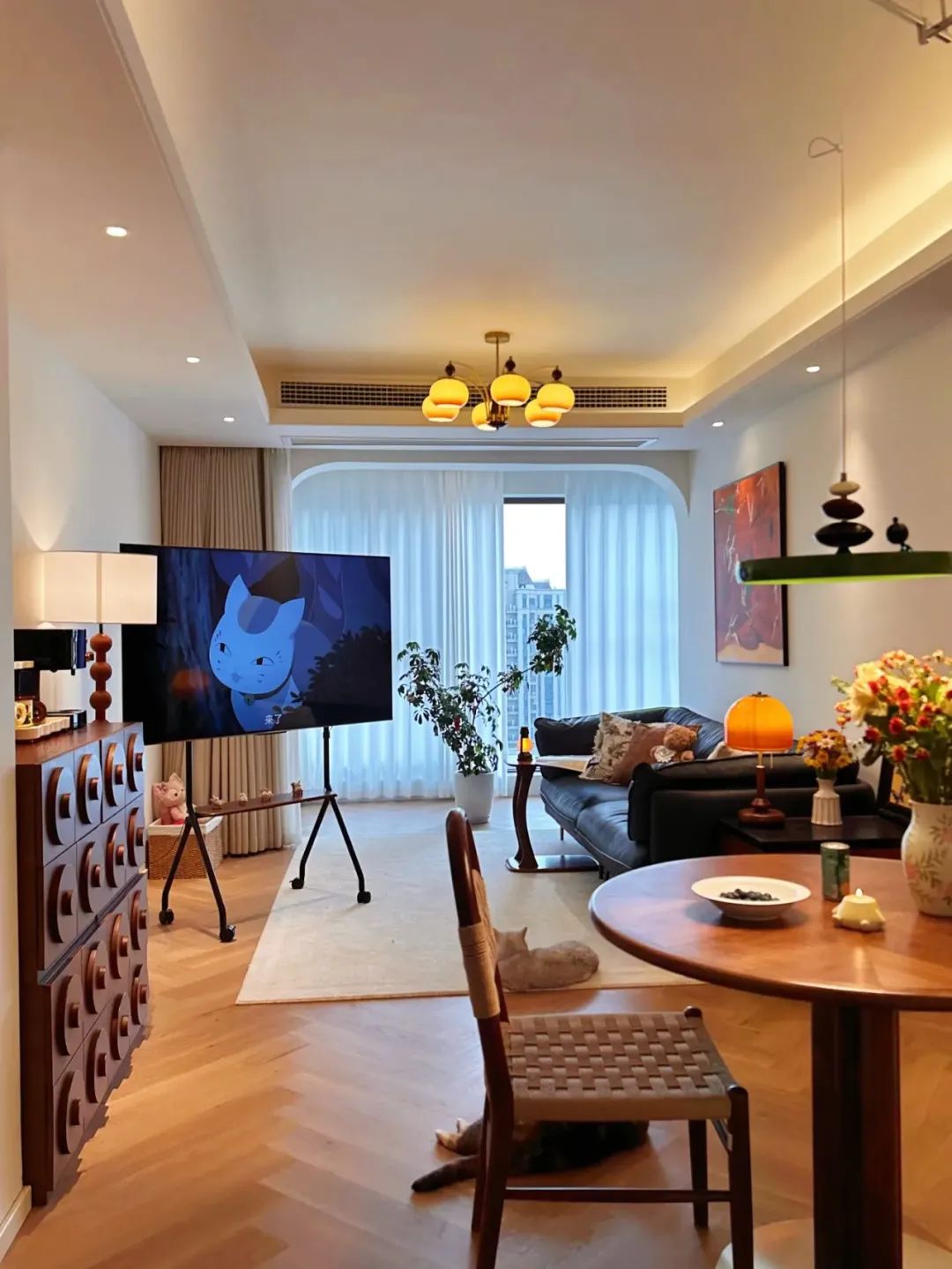 客厅开间3.25m 层高2.7m,没有做整面电视柜,没有做餐边柜
