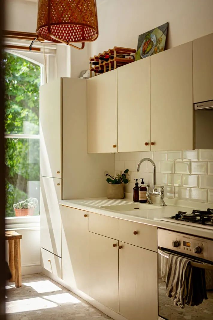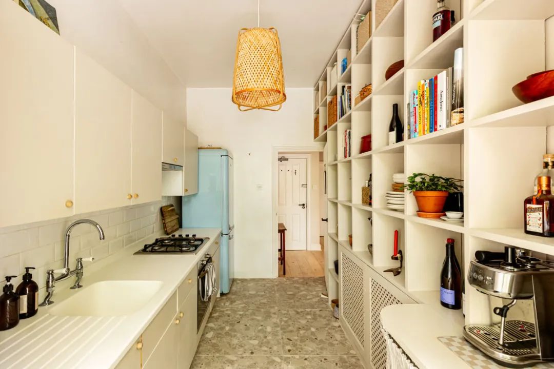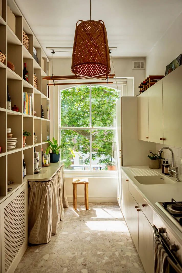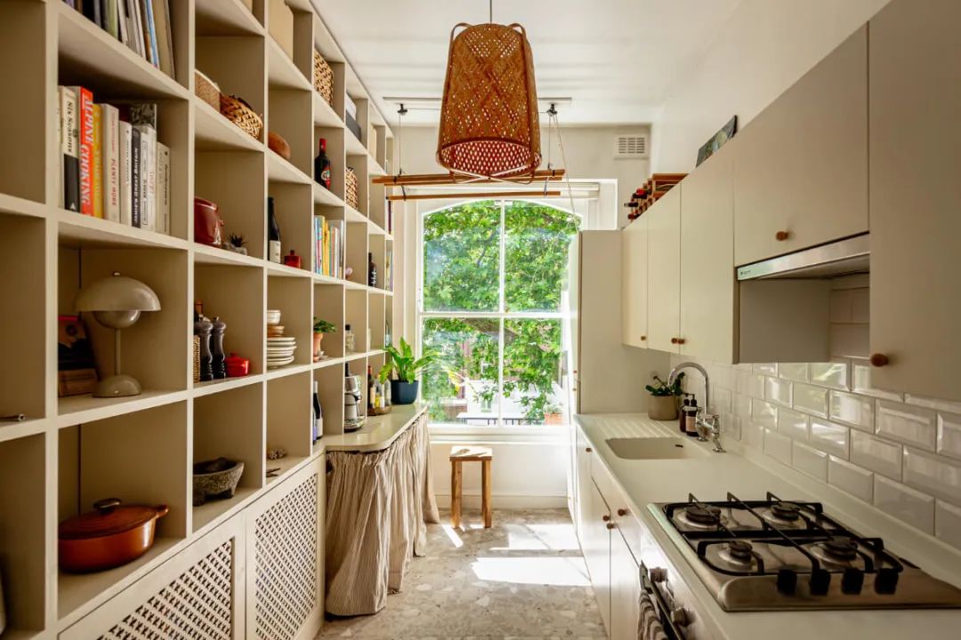 厨房紧邻客厅,设有一扇漂亮的原始大框格窗