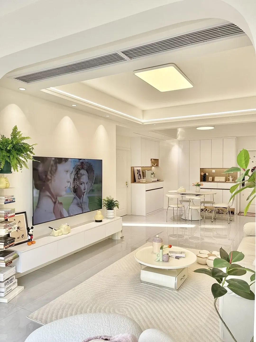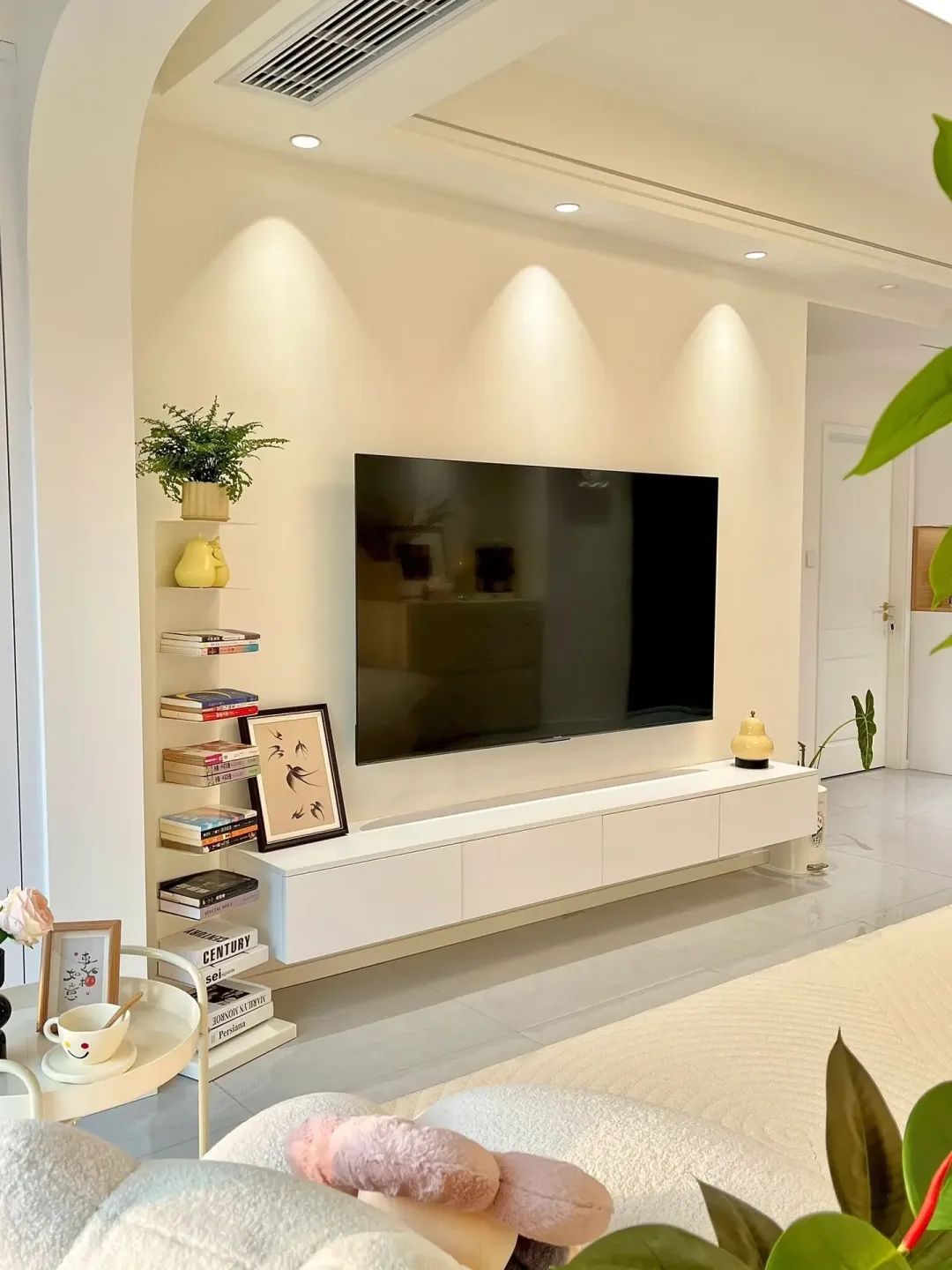 客厅开间3.4米,层高2.7米,电视背景墙2.8米,不做复杂电视背景墙,搭配悬空电视柜,75寸电视。