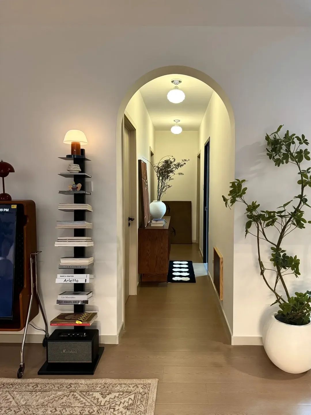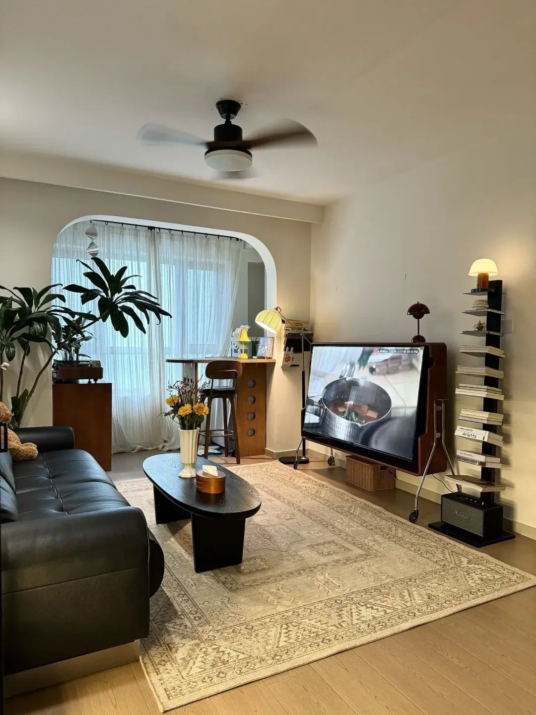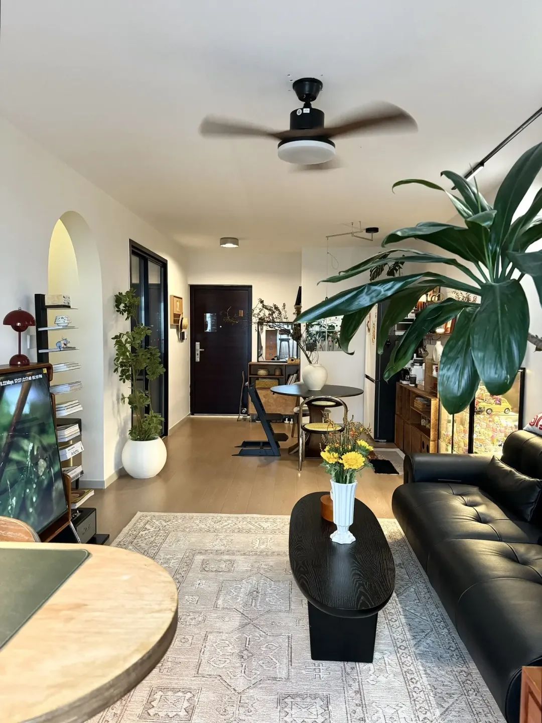 全屋地面通铺了大块木纹砖,更有延伸感。