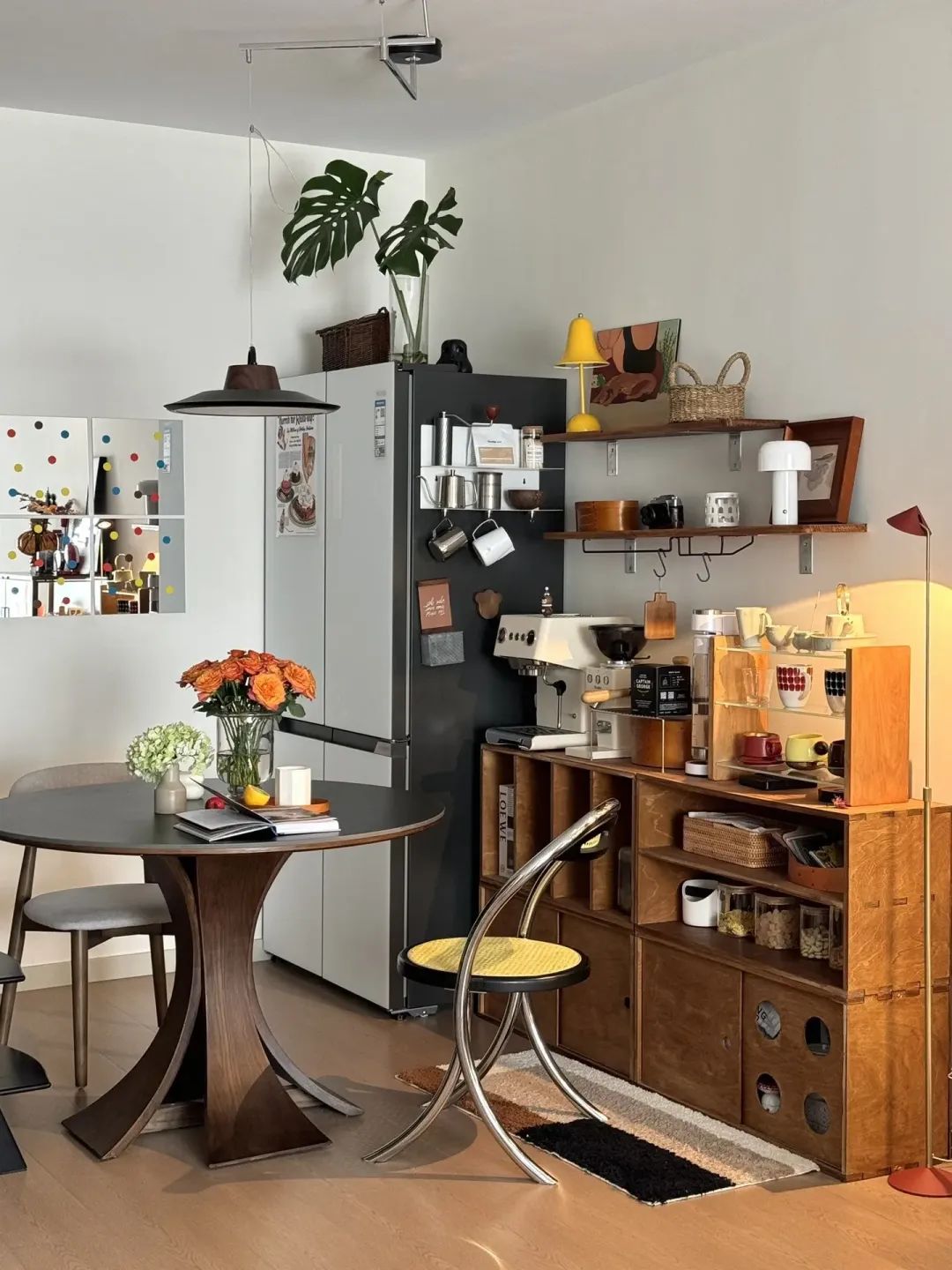 餐厅和入户都没有定制柜子,DIY了咖啡角