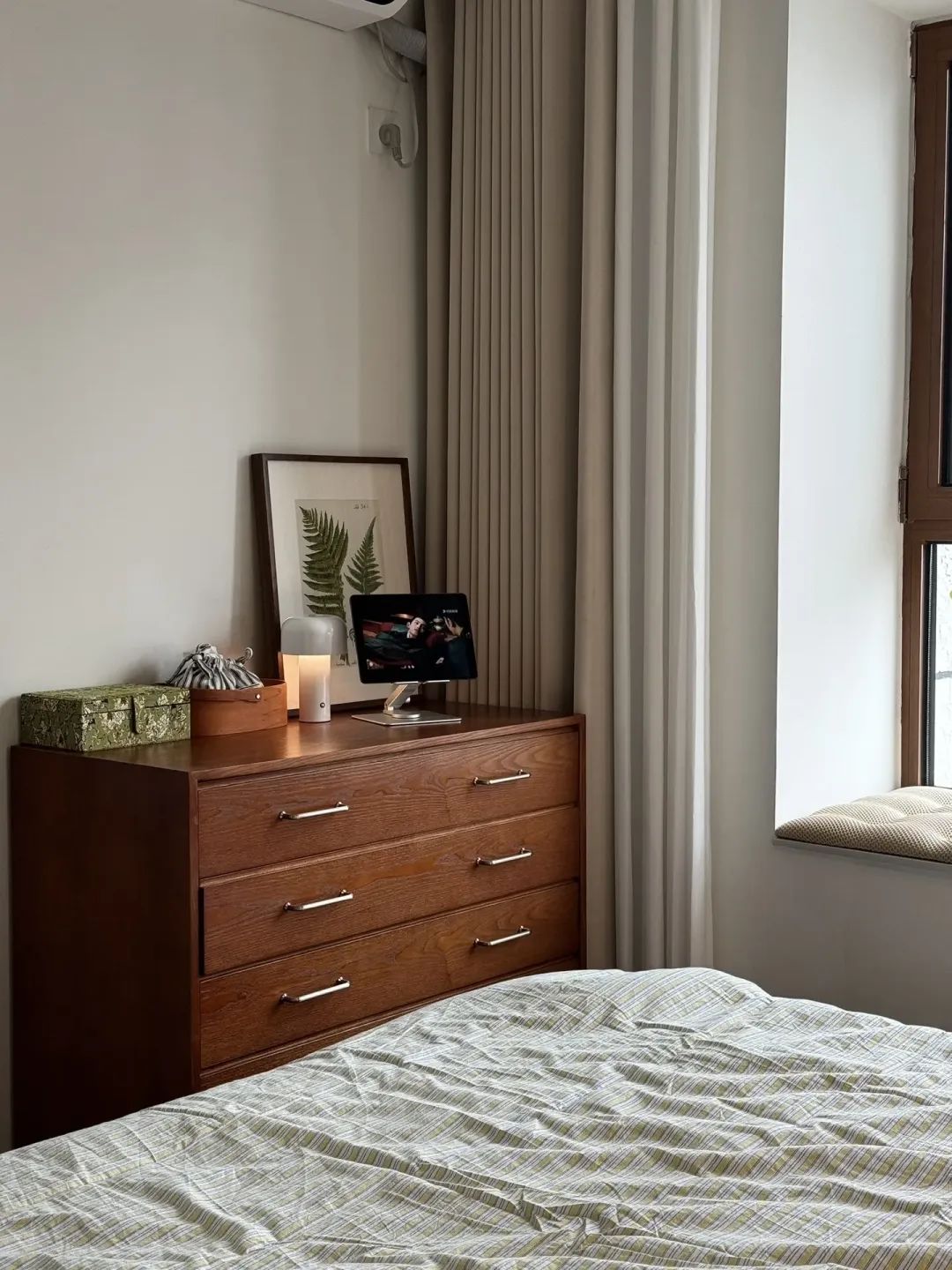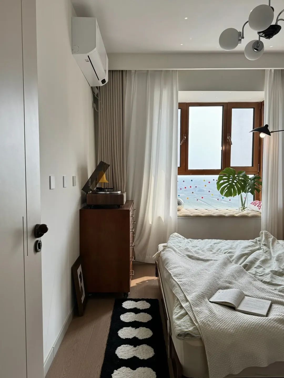 软装以暖白色➕原木色配色为主,不放太多杂乱的摆件空间也显大了不少。