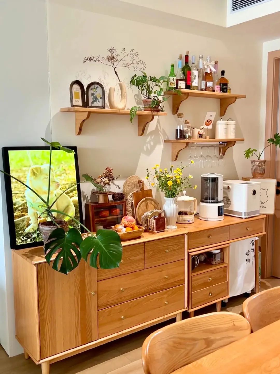 餐厅两边放置了餐边柜。